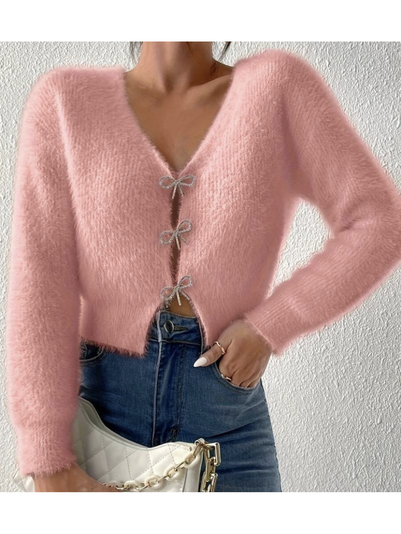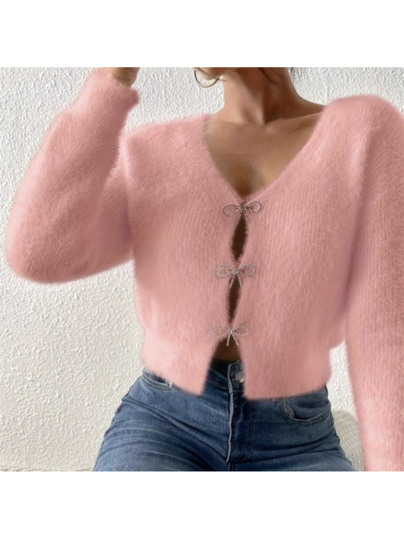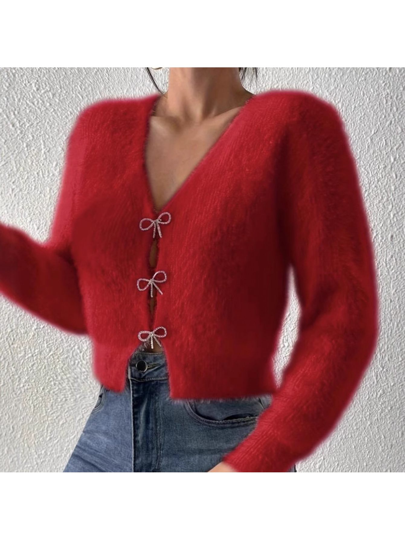100% WOOL Cardigan | Autumn and Winter New Bow Single Breasted Sweater Coat with Long Sleeves and Lapel Collar