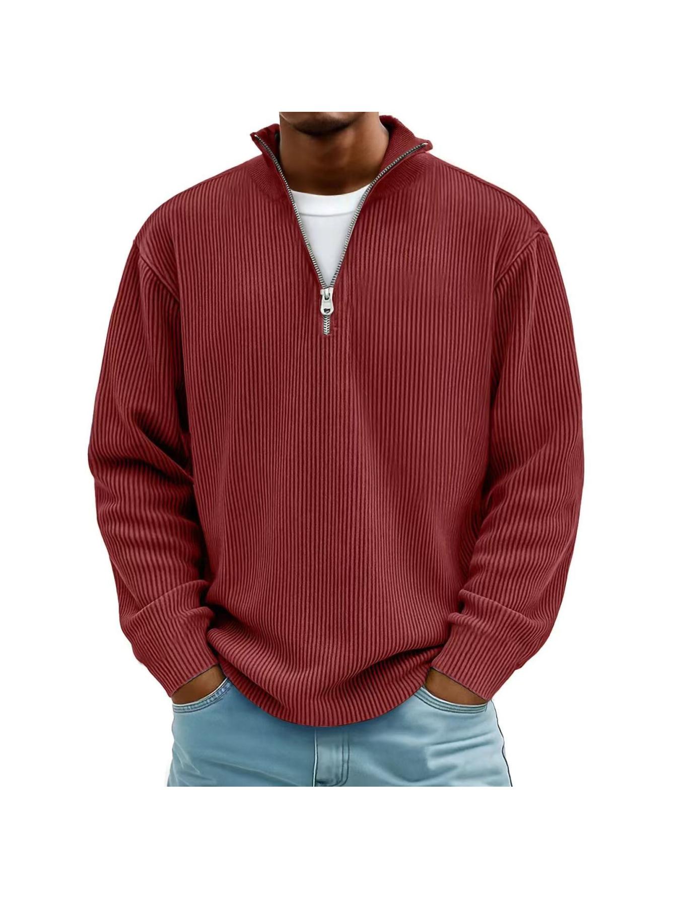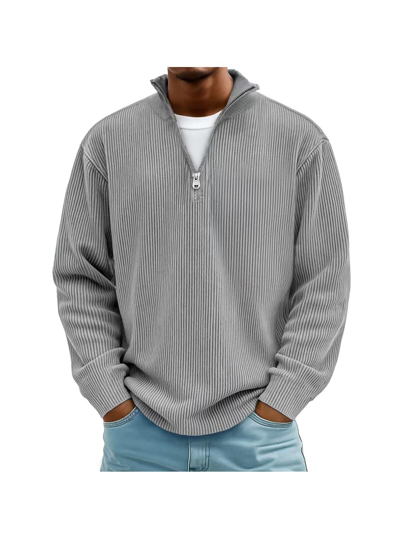Men's Corduroy Quarter-Zip Sweater - Thermal Stand Collar -Neck Pullover, Corduroy Sweaters for Fall Winter Spring Summer, Casual Long Sleeve Machine-Washable Sweaters in Neutral Colors (/Tan/) - Regular Fit Top, PLUS SIZE
