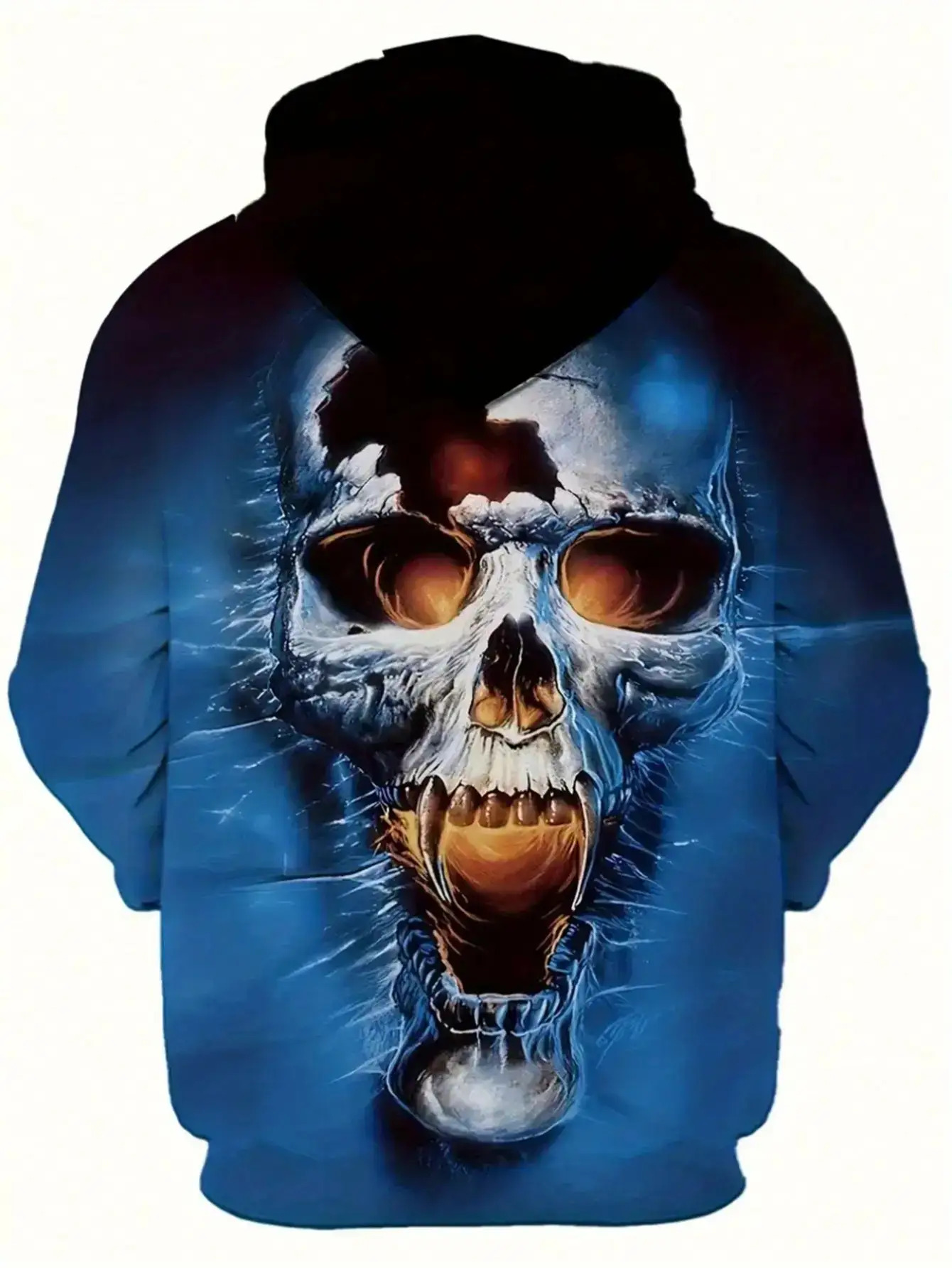 3D Men's Long Sleeve Casual Hoodie, Skull Print Hoodie, Drawstring, Kangaroo Pocket, Fashion Sweatshirt, Fashion Pattern Hoodie, Sports Fashion, Daily Spring Autumn Winter Top, PLUS SIZE