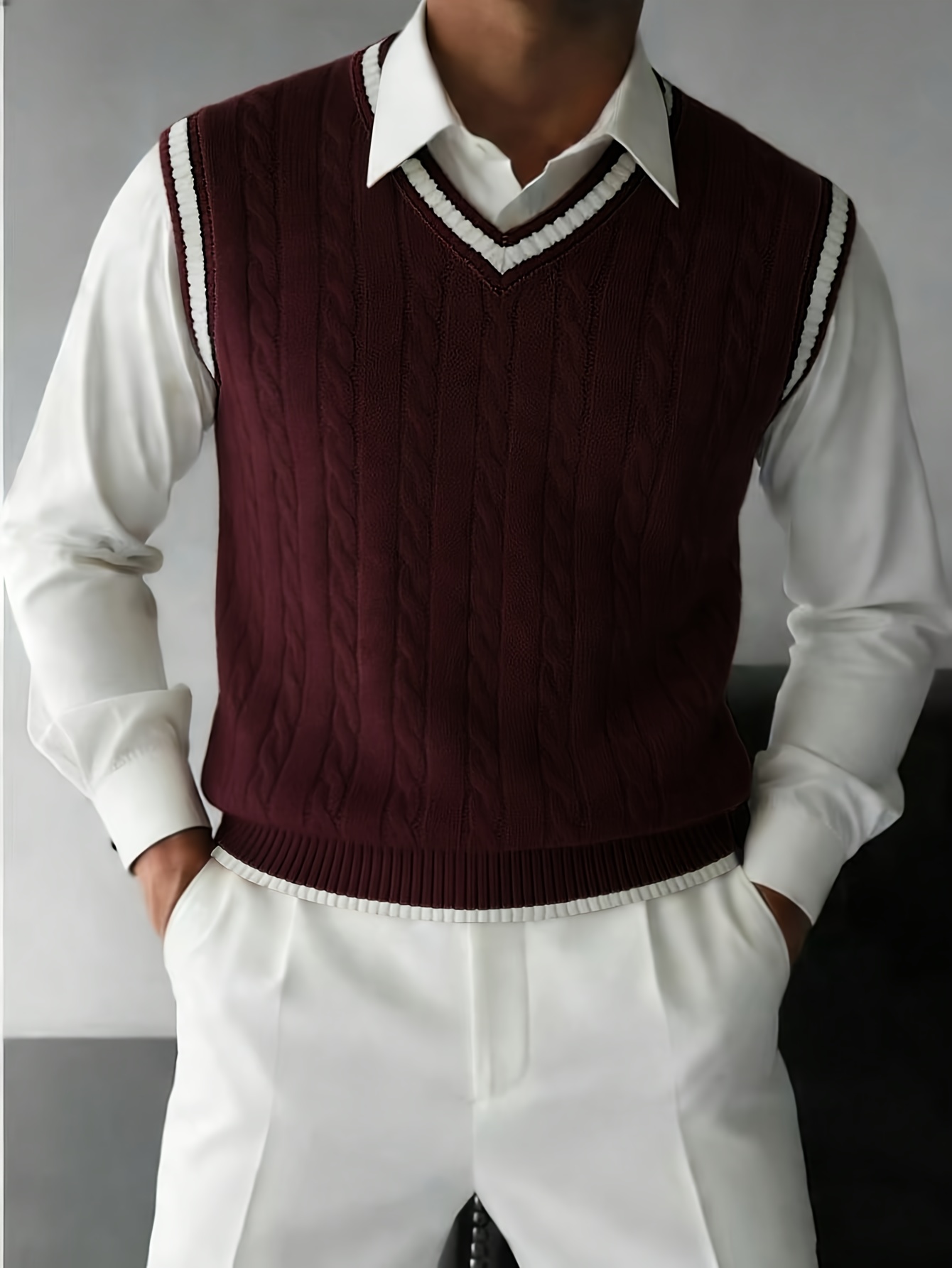 Men's Preppy Striped Color-Block Casual Versatile Knit Vest