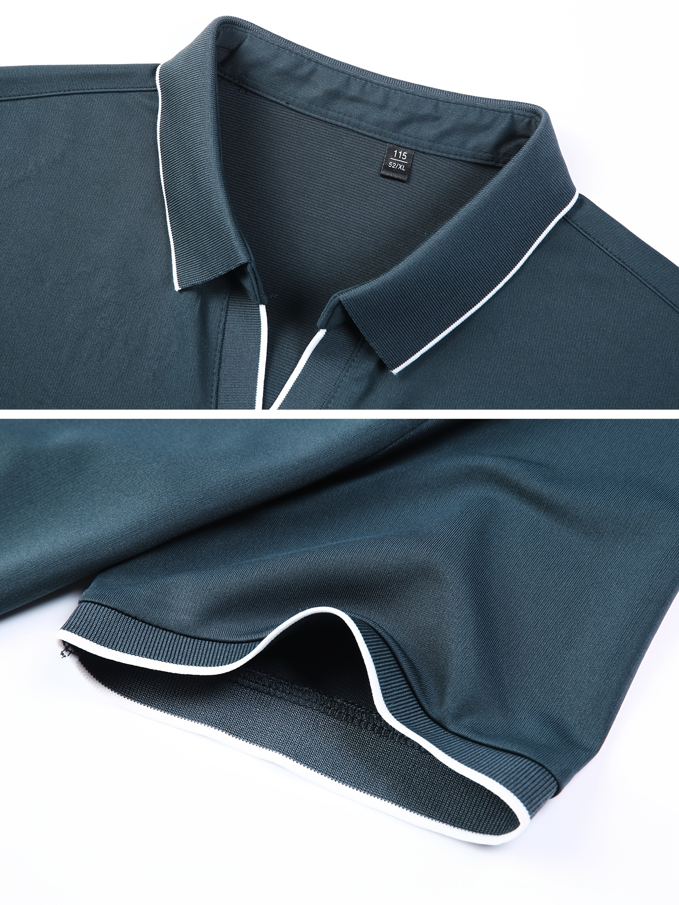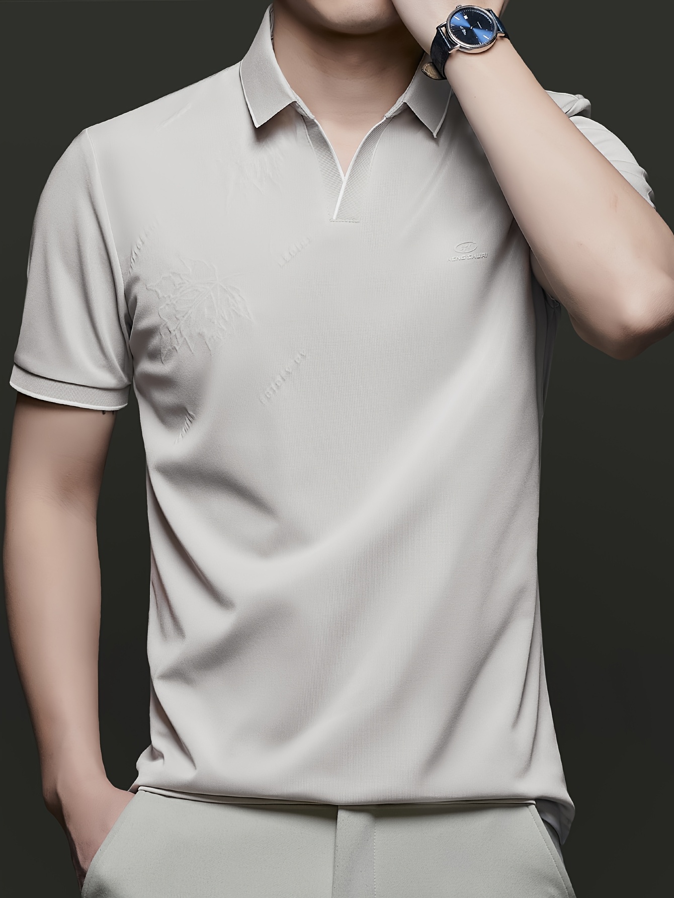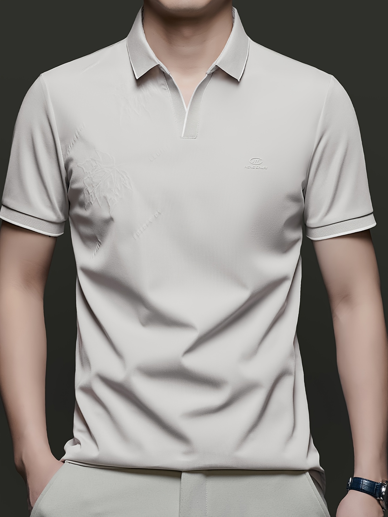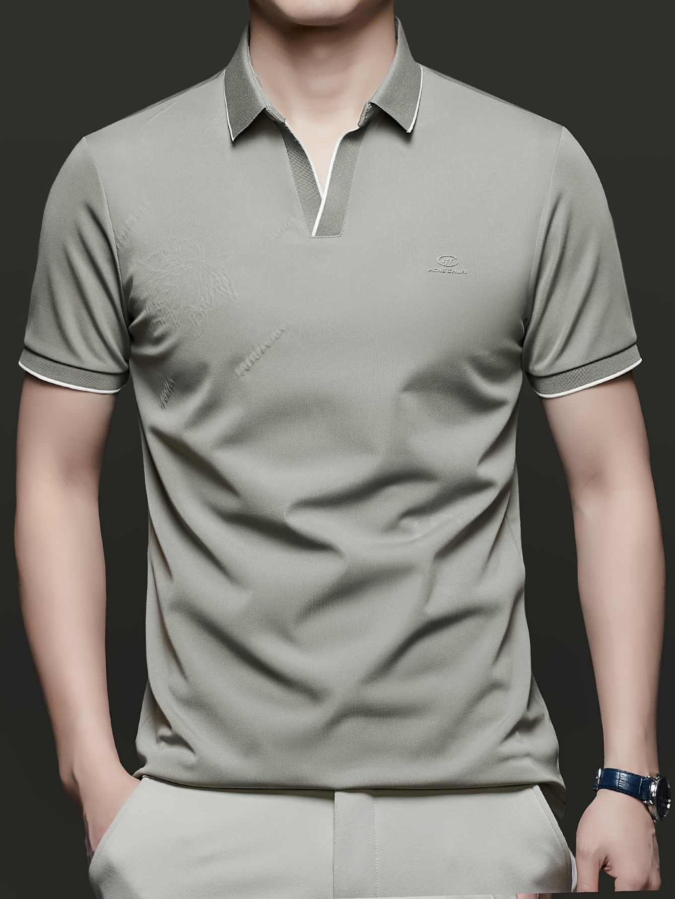 Men's Summer Short-Sleeve Collar Knit Shirt - Breathable V-Notch Blouse, Machine-Washable Casual & -Casual Tunic Top, Color-Blocking Trim (Short T) for Spring/Summer - In Stock 2518