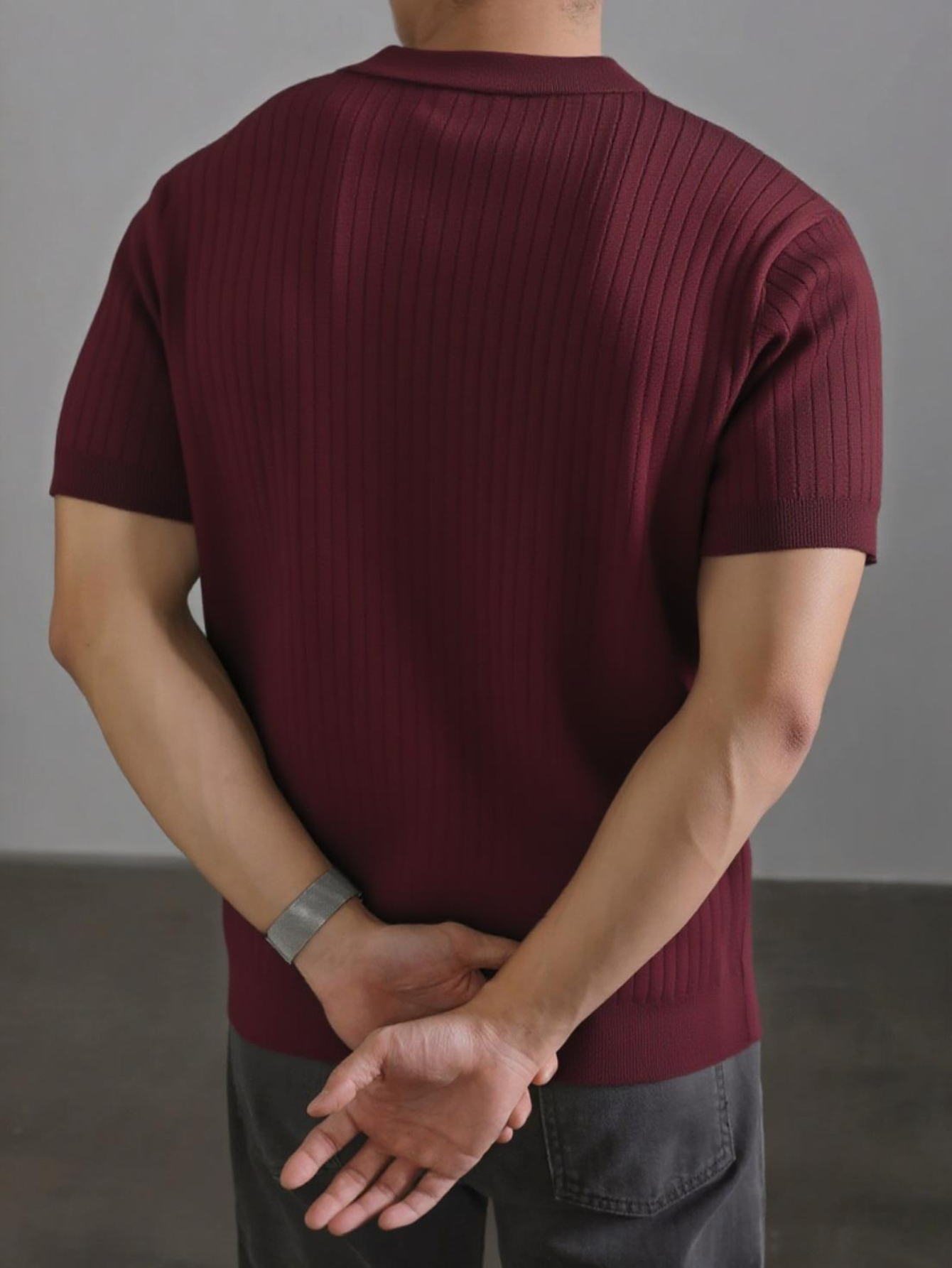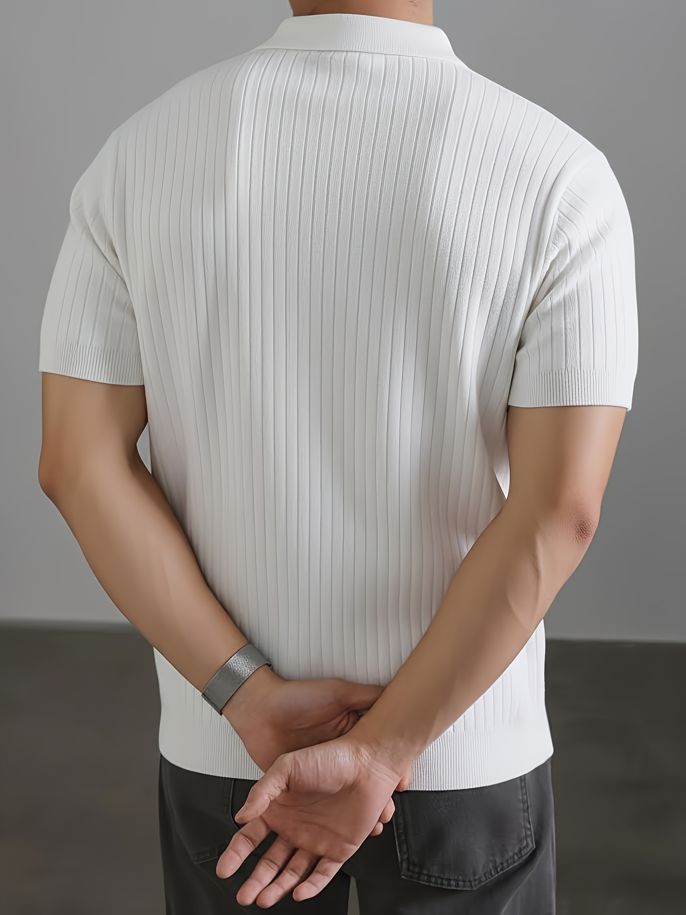 Men'S Summer Fashion Rib-Knit Polo Shirt | Short Sleeve, Lapel Collar, Rayon, Medium Stretch, Solid Color, Ideal for Business Travel and Casual Social Events