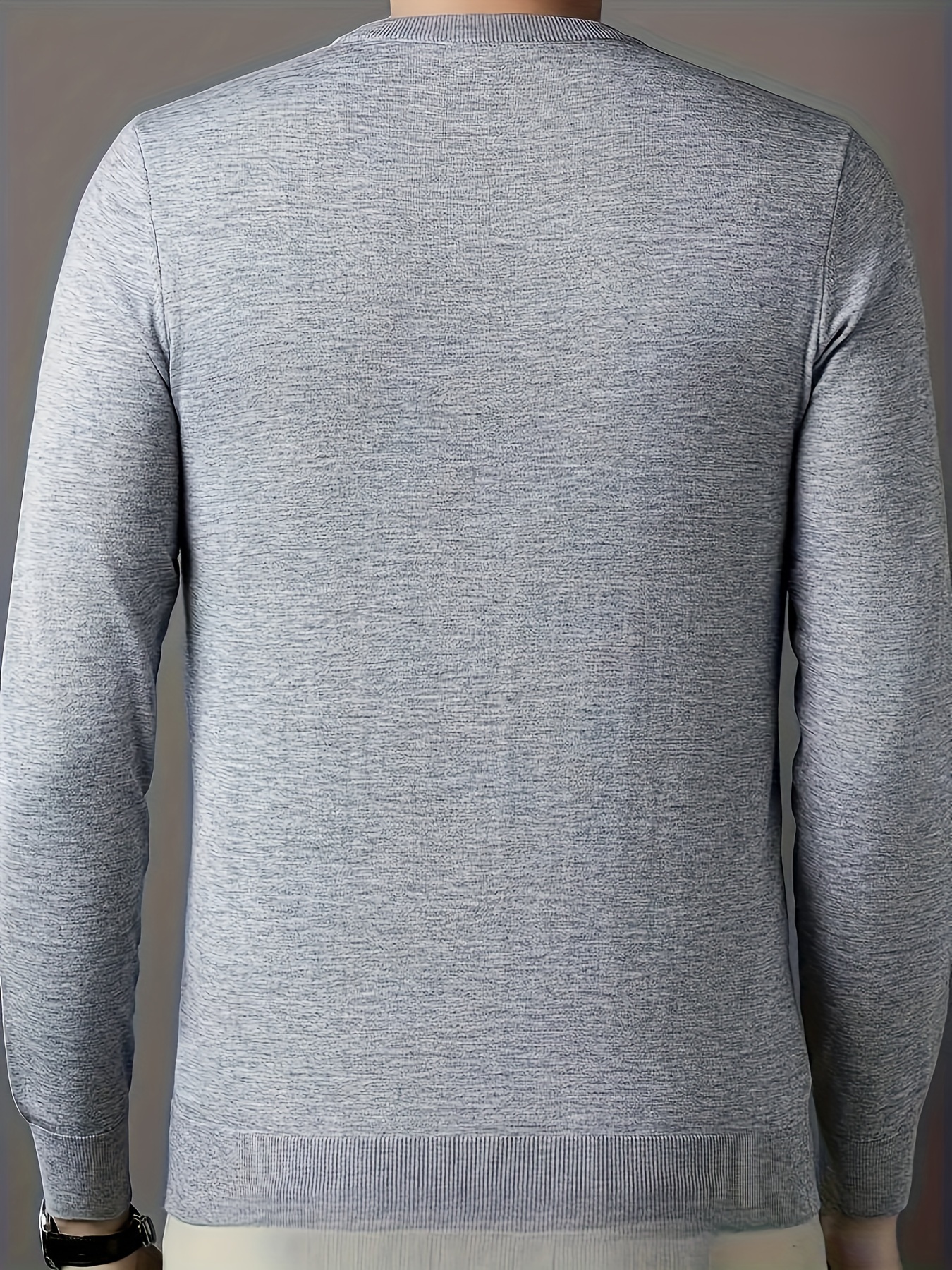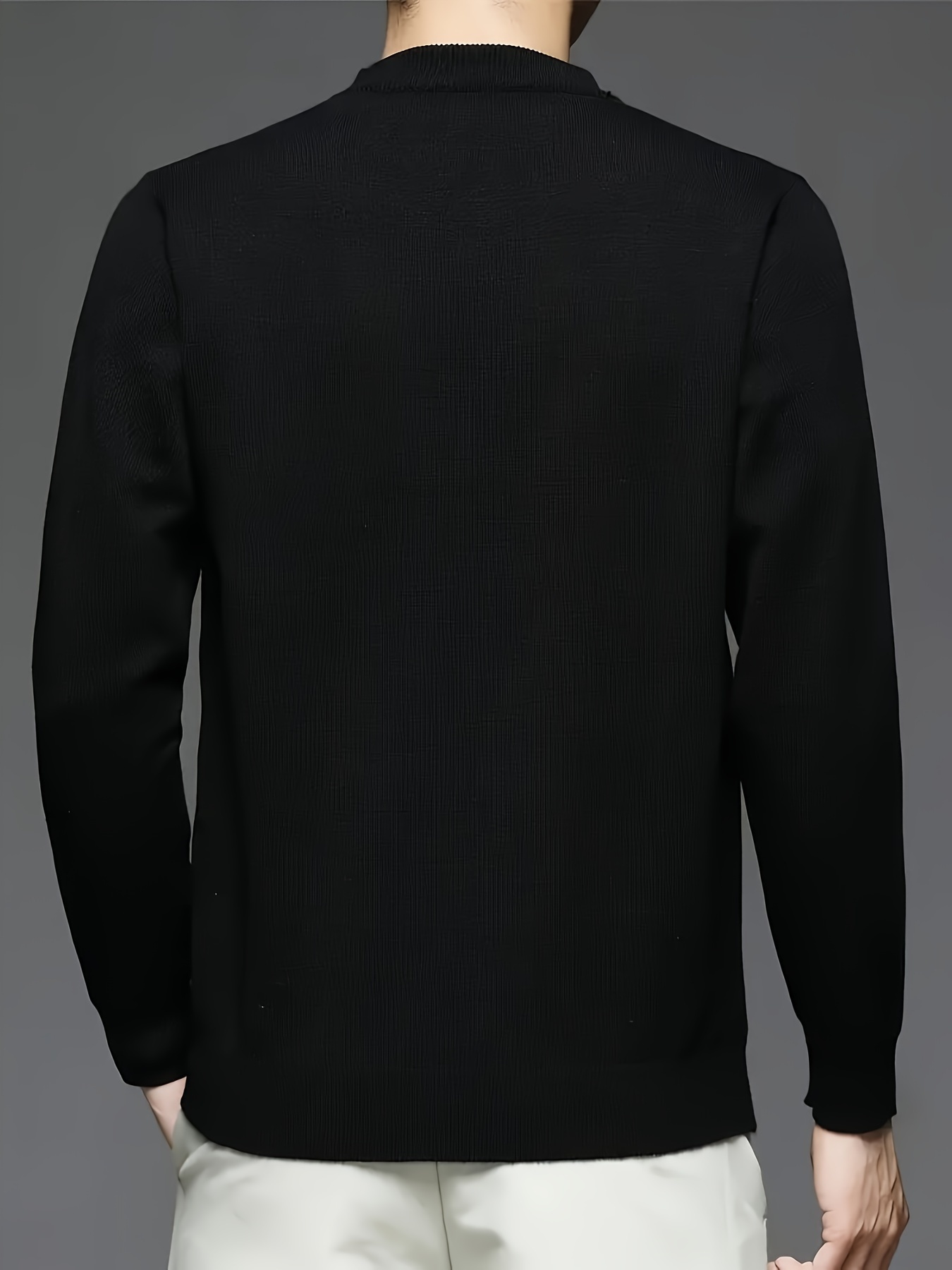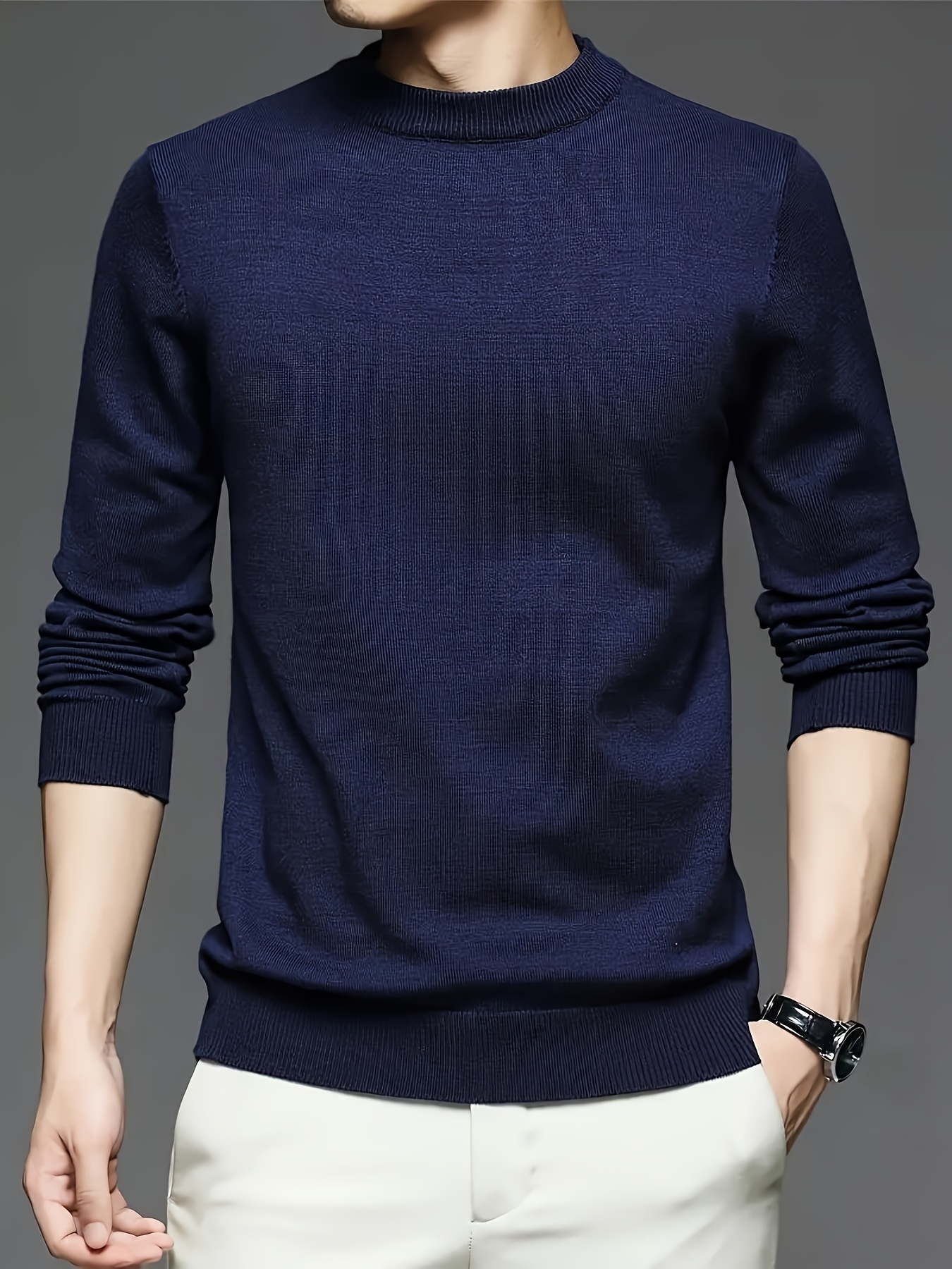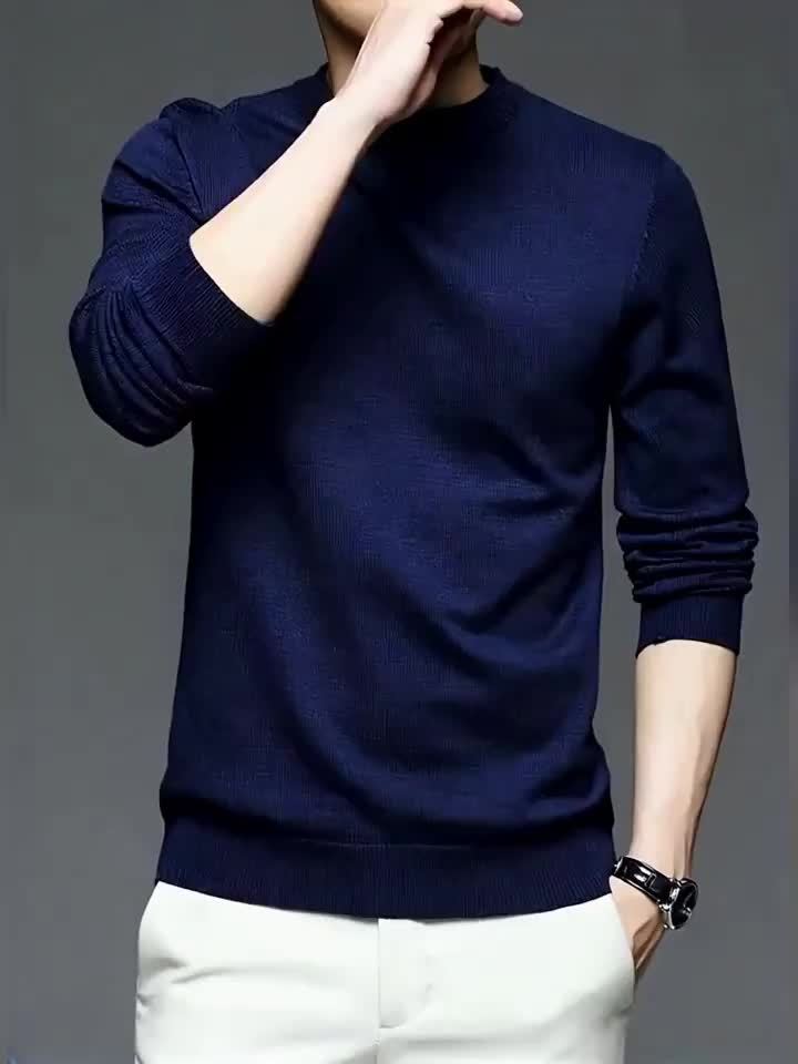 New Men'S Solid Color Round Neck Knitted Pullover Sweater