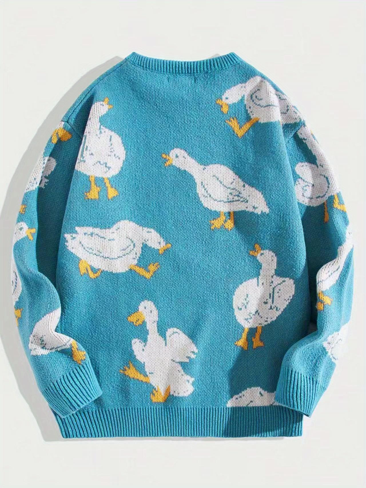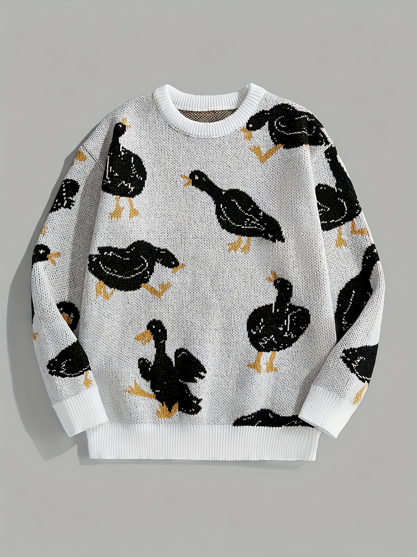 Men's Trendy Cute Pattern Animal Goose Pullover Casual Couple Street Round Neck Sweater Knitwear Warm