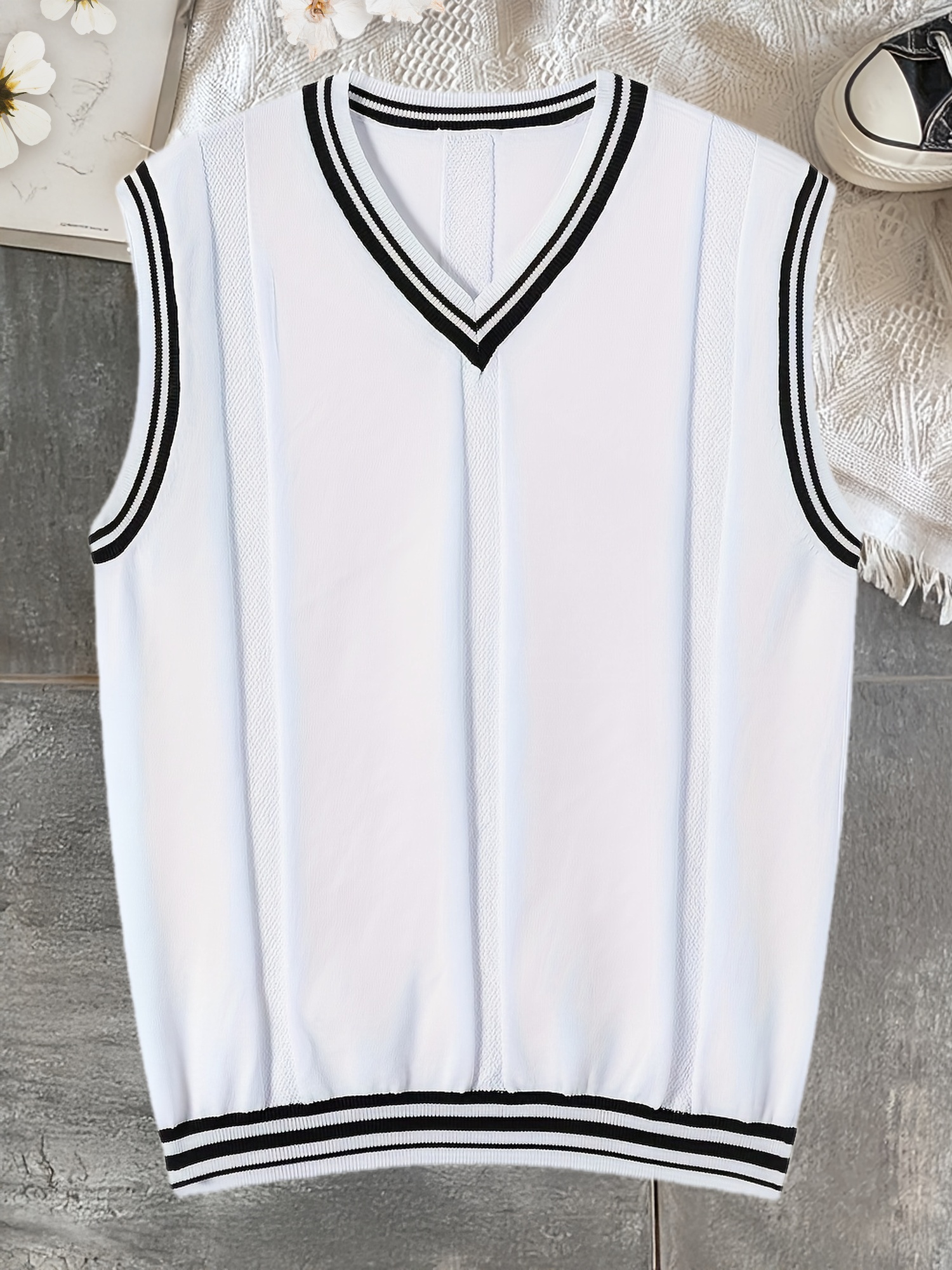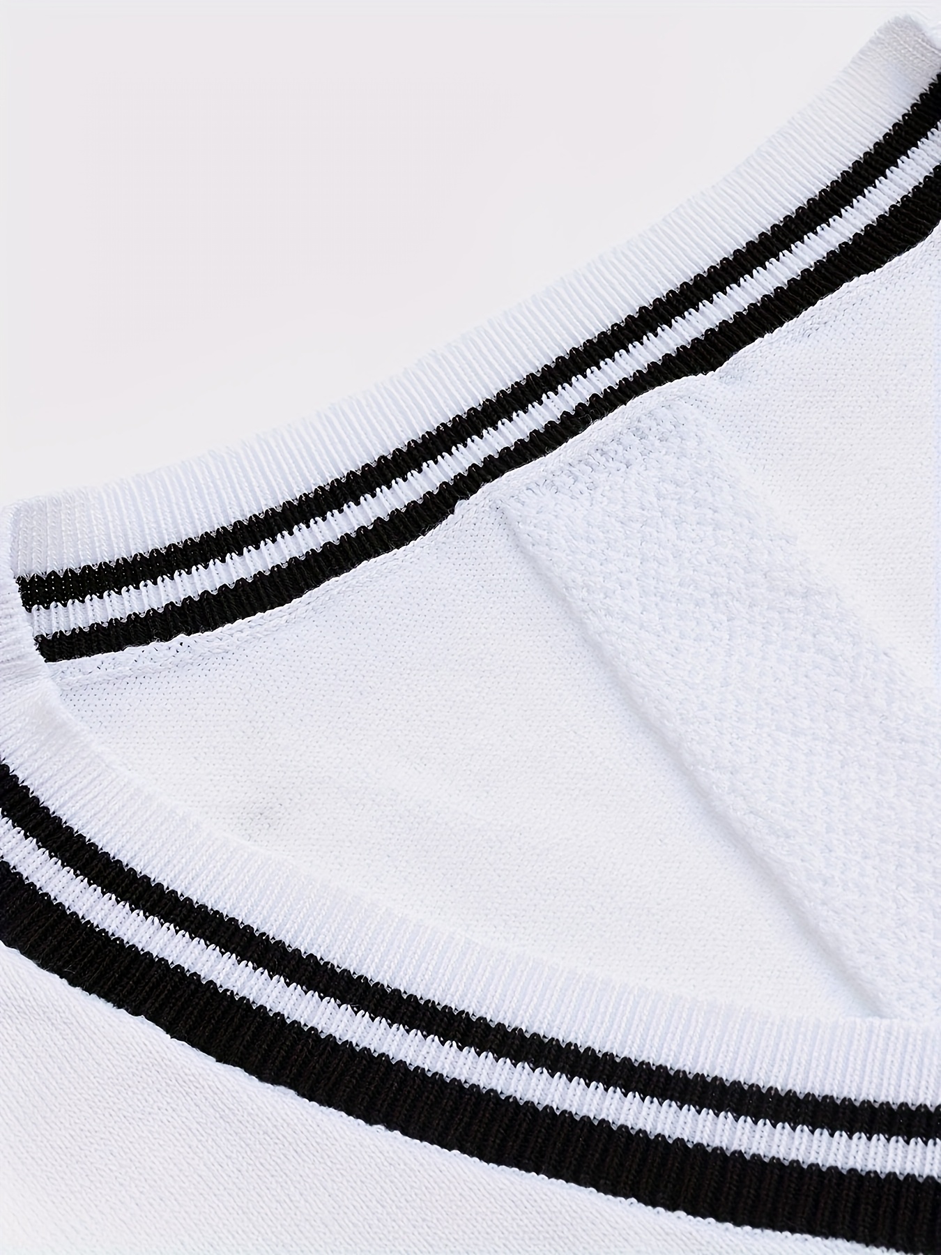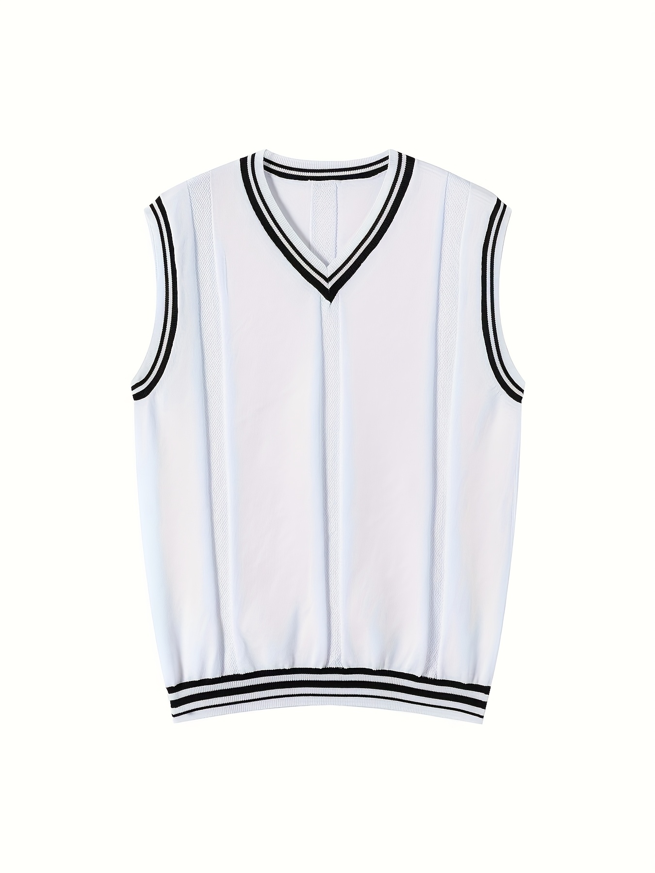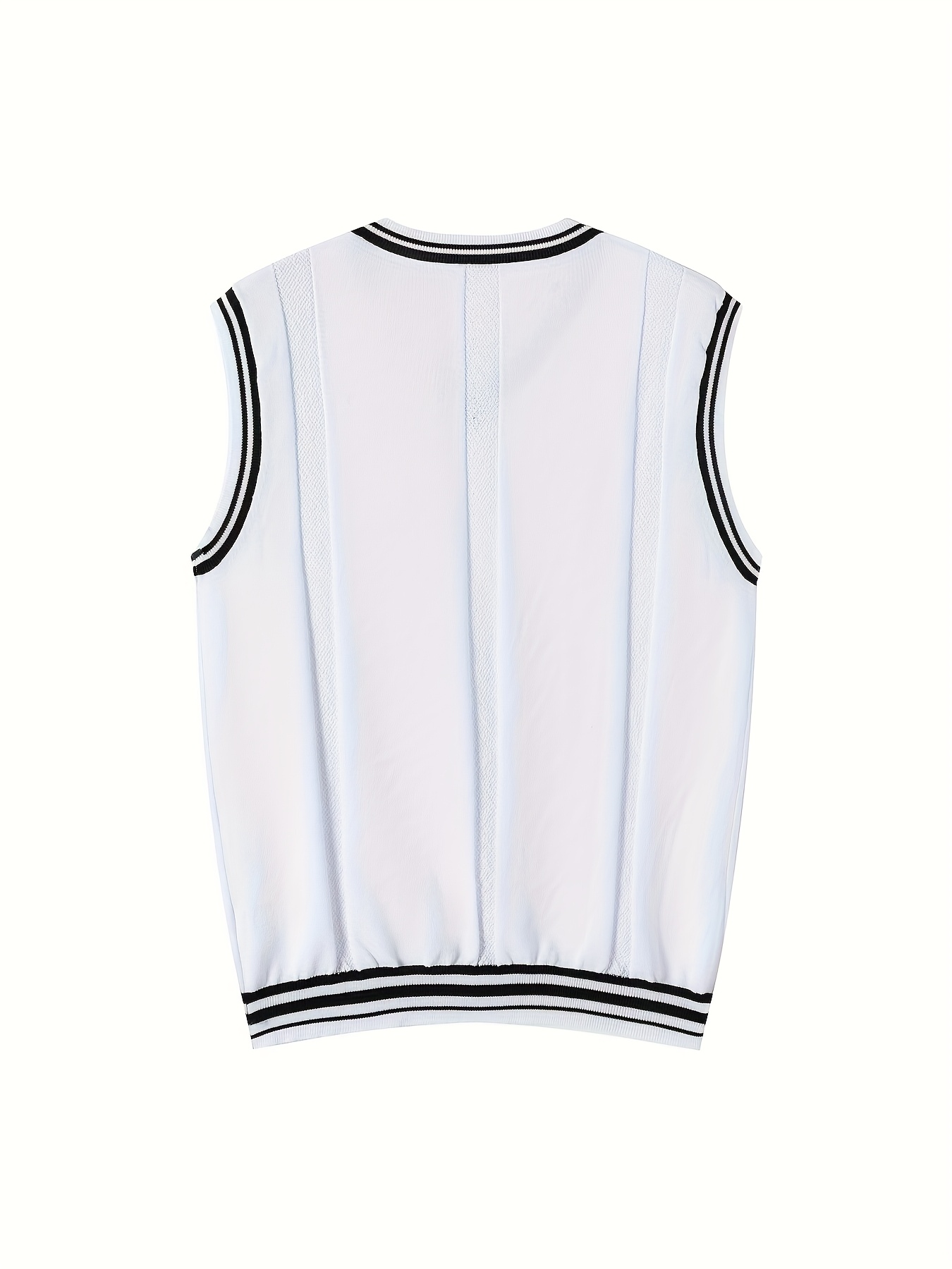 Men's V-neck Pullover Vest Cardigan, College Style Knitted Sleeveless Sweater