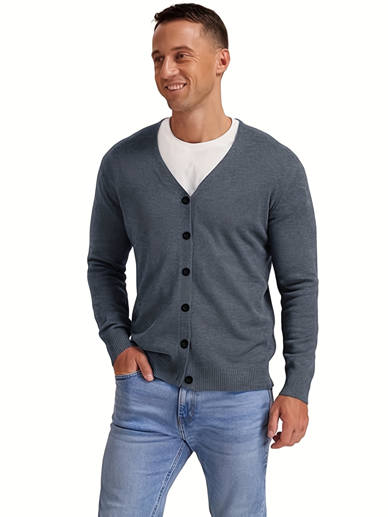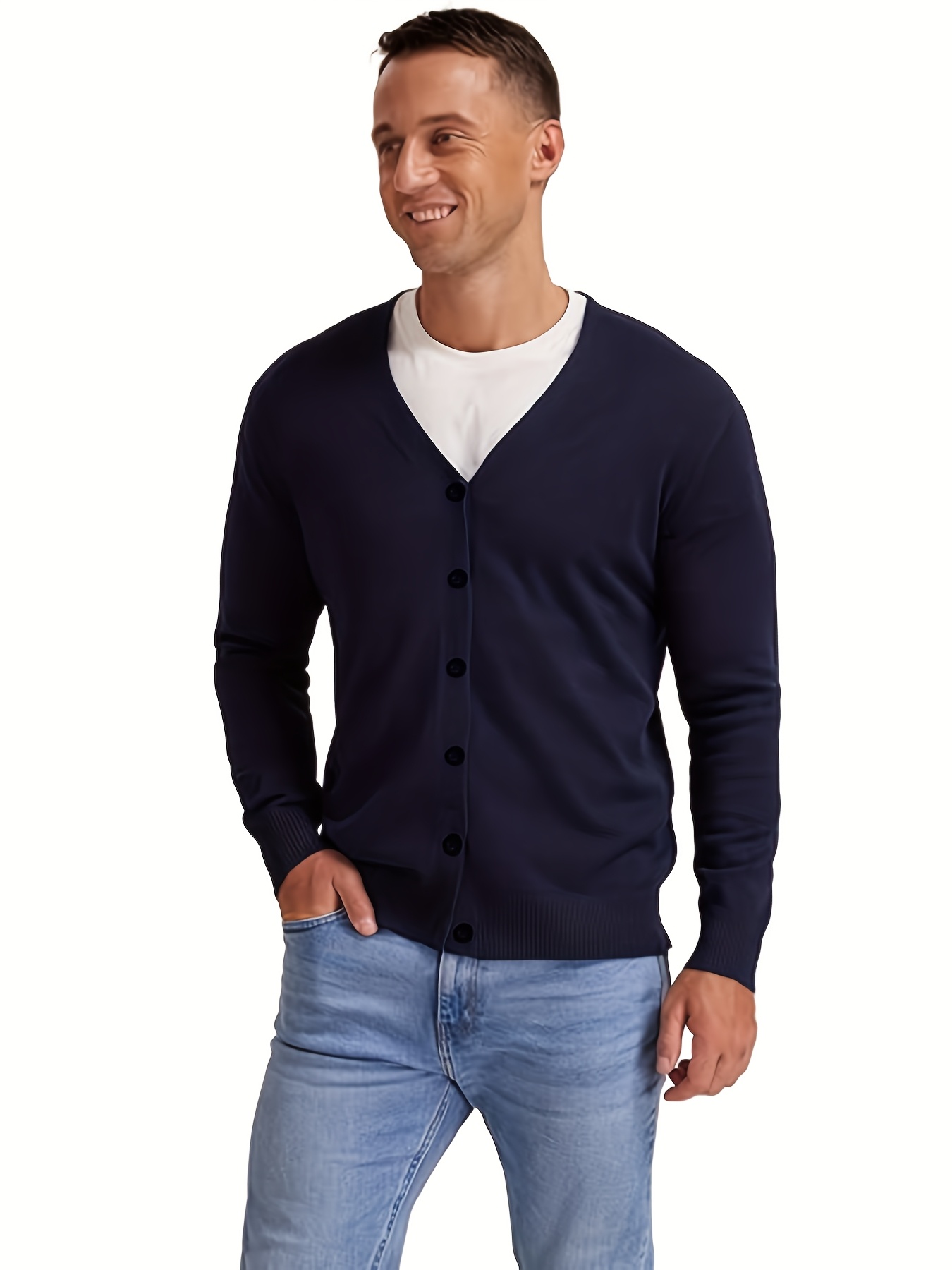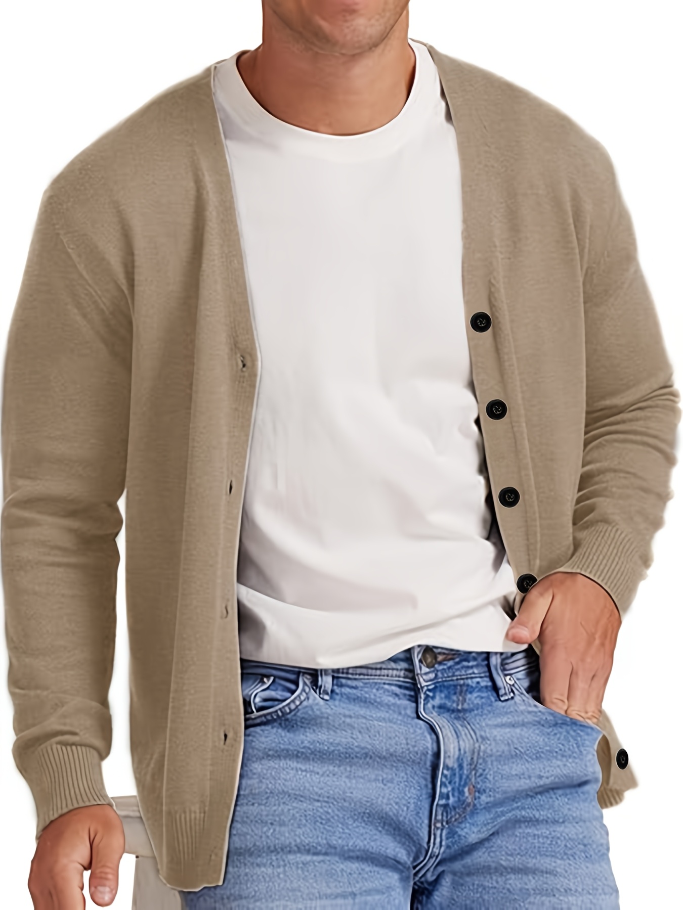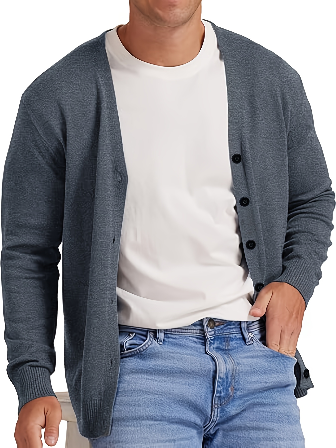 New Men's Solid Color Spring/Autumn Knit Cardigan V-Neck Outerwear Youth Knit Sweater Coat