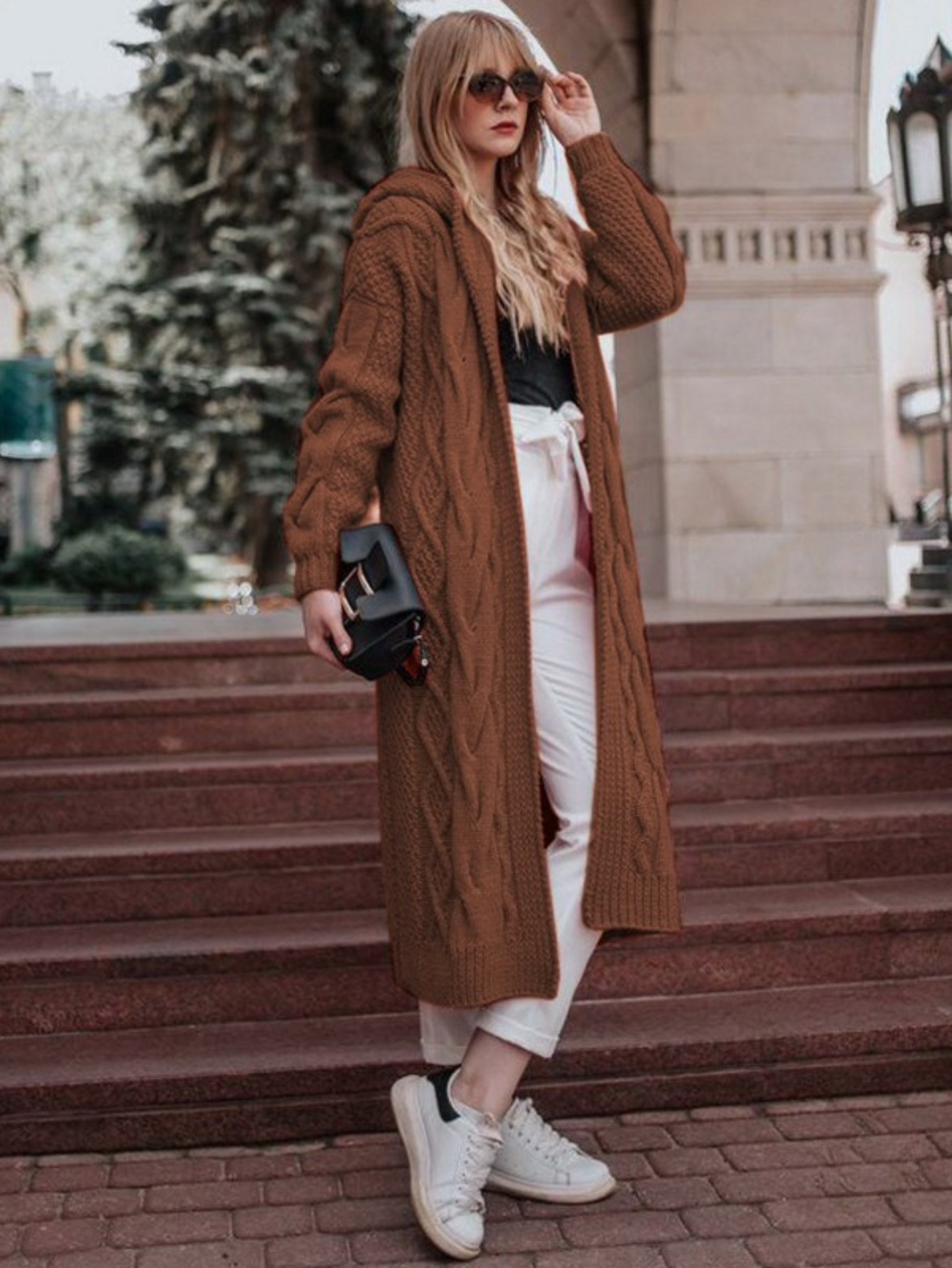Plus Size - HERTALK Women'S Oversized Hooded Cable Sweater - Winter Warm Long Loose Fit Sweater with Round Neck & Raglan Sleeves, Plus Size Friendly Solid Color Cozy Sweater for Fall/Winter, Casual Elegant Style in & More Neutral Tones (No Chest Pad