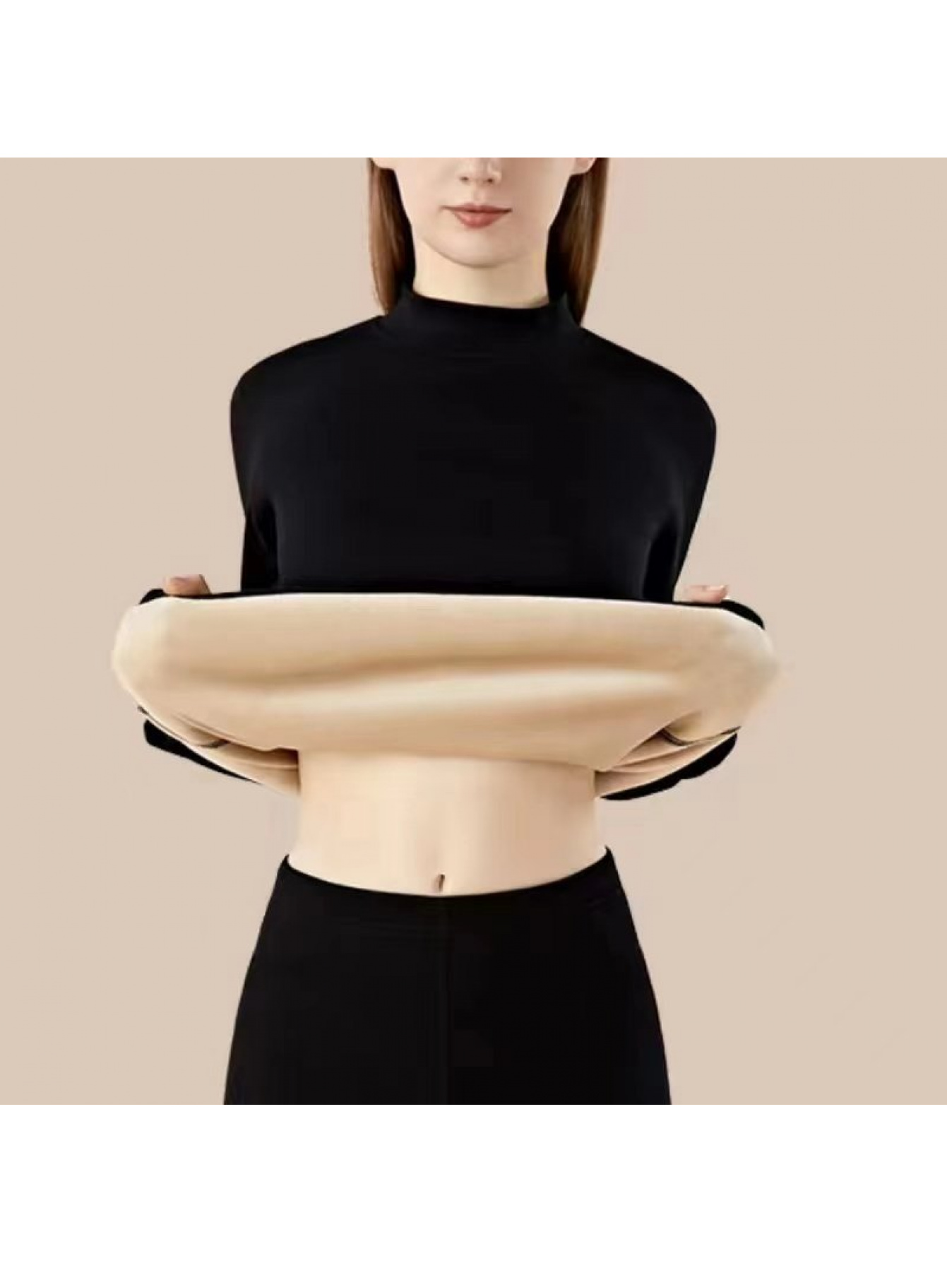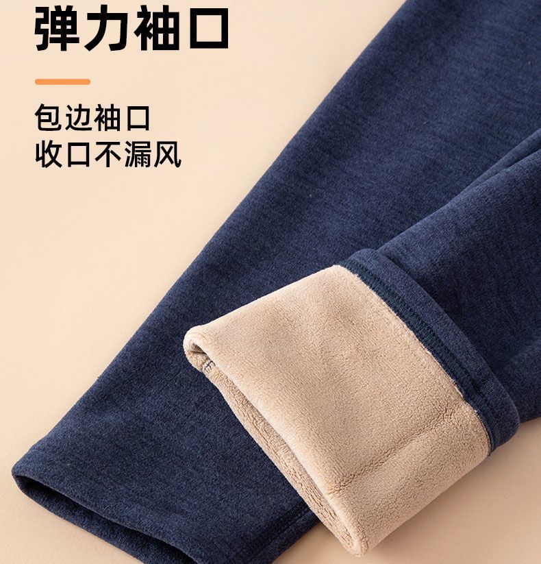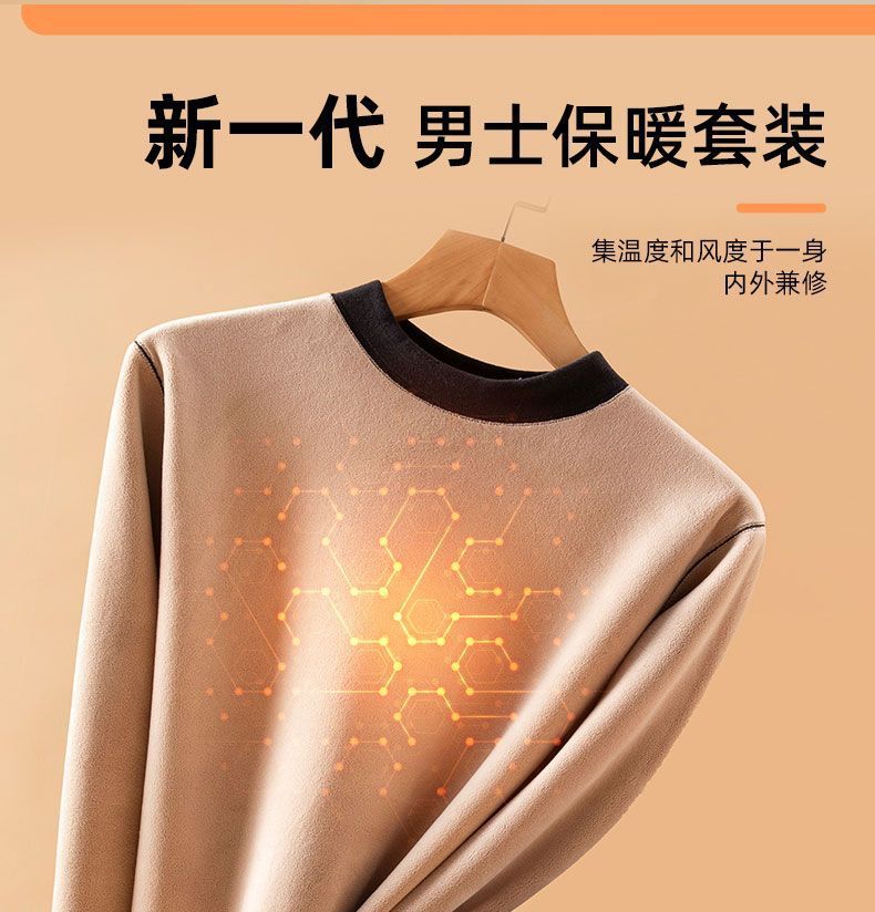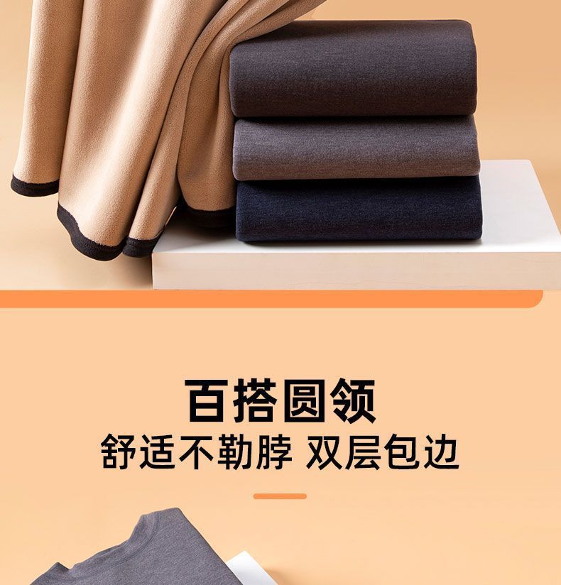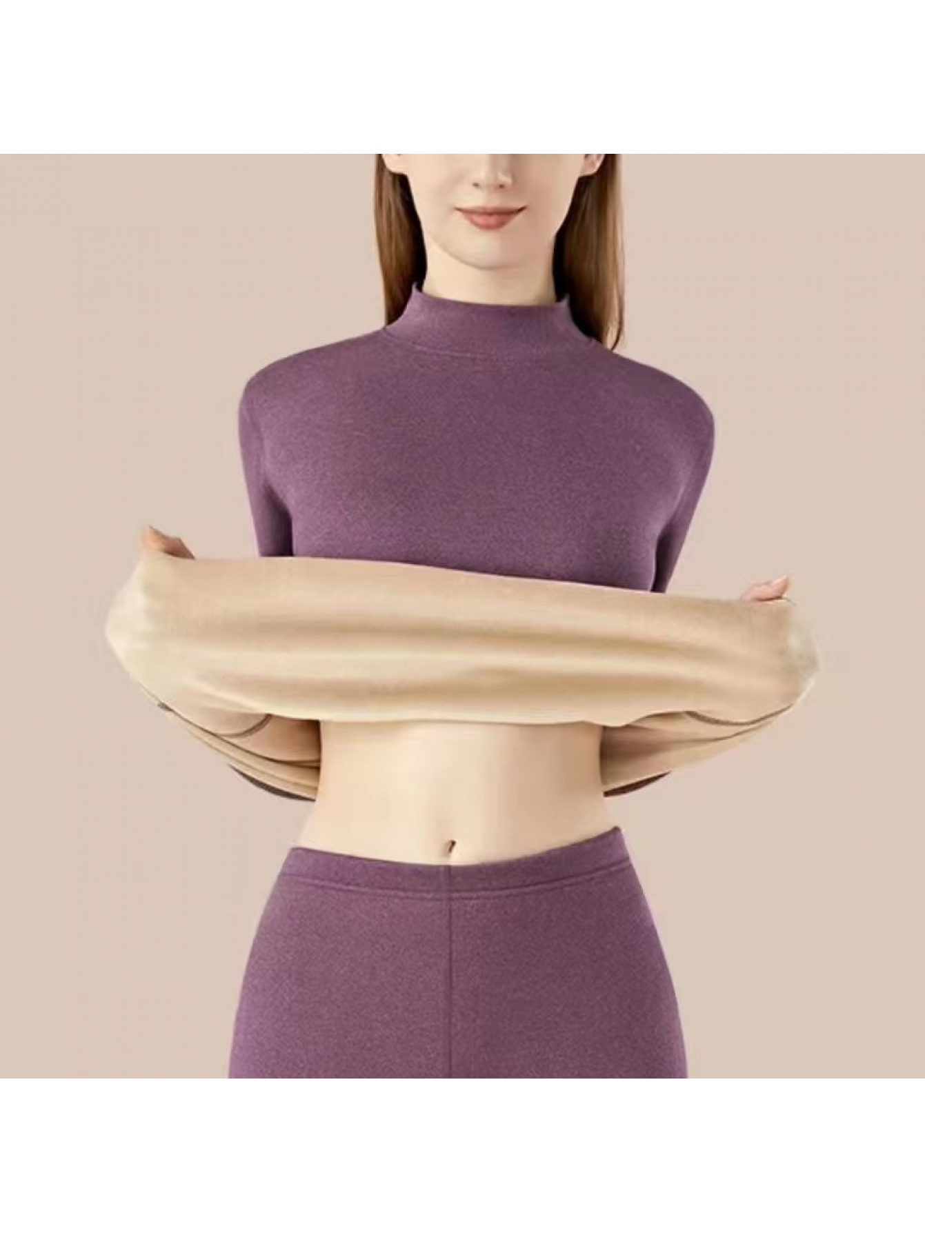 Plus Size - Women'S Thermal Underwear Set - Fleece-Lined Thickened Winter Panties, Full Coverage Round Neck Base Layer, Soft Stretchy Fabric for Cold Weather, Everyday & Formal Wear, Cozy Warmth, Seamless Design, Layering Essentials (Solid Color)