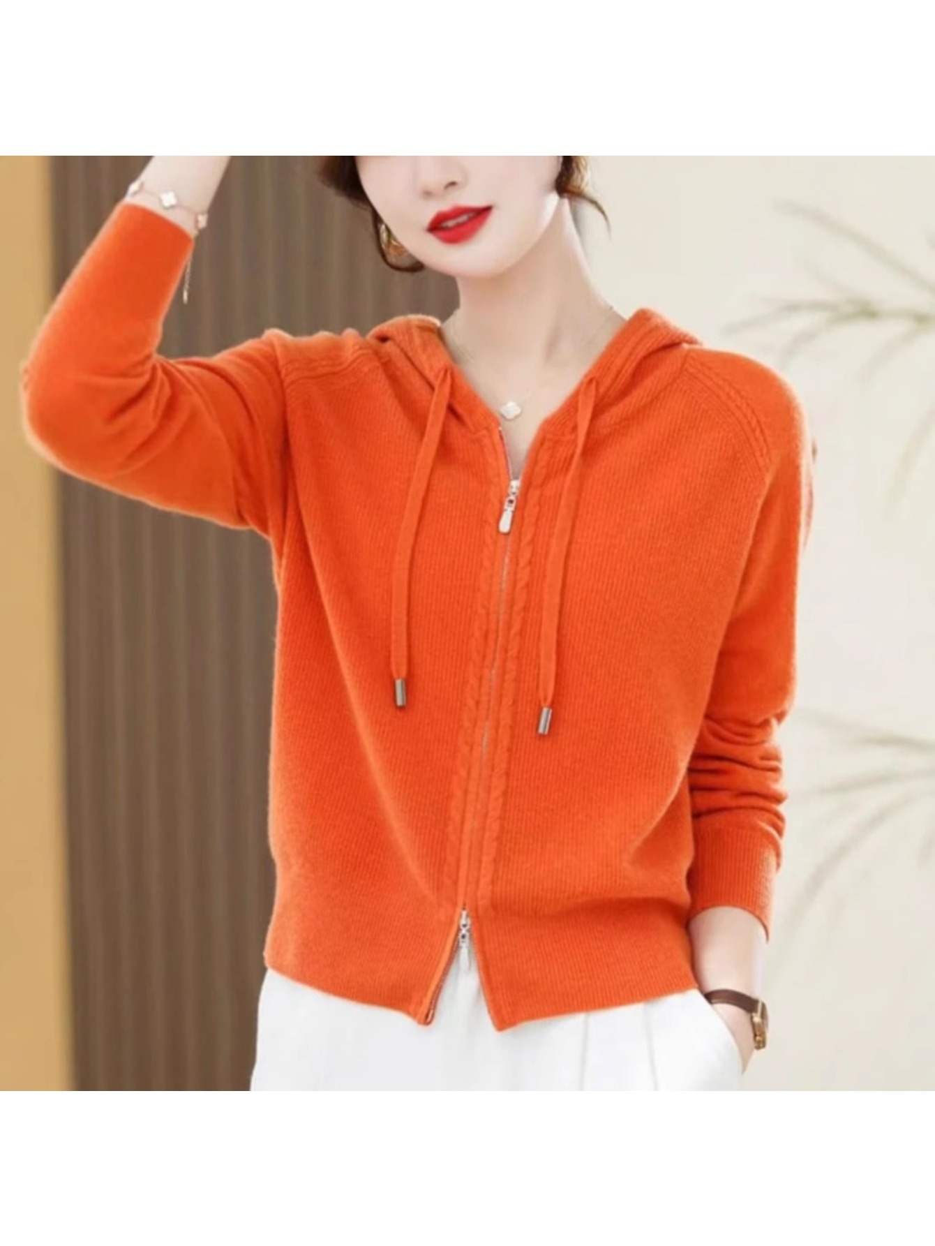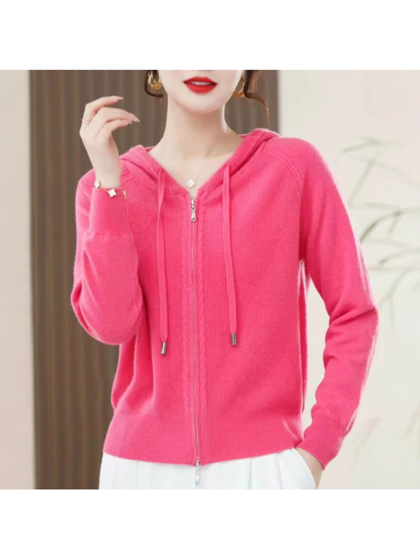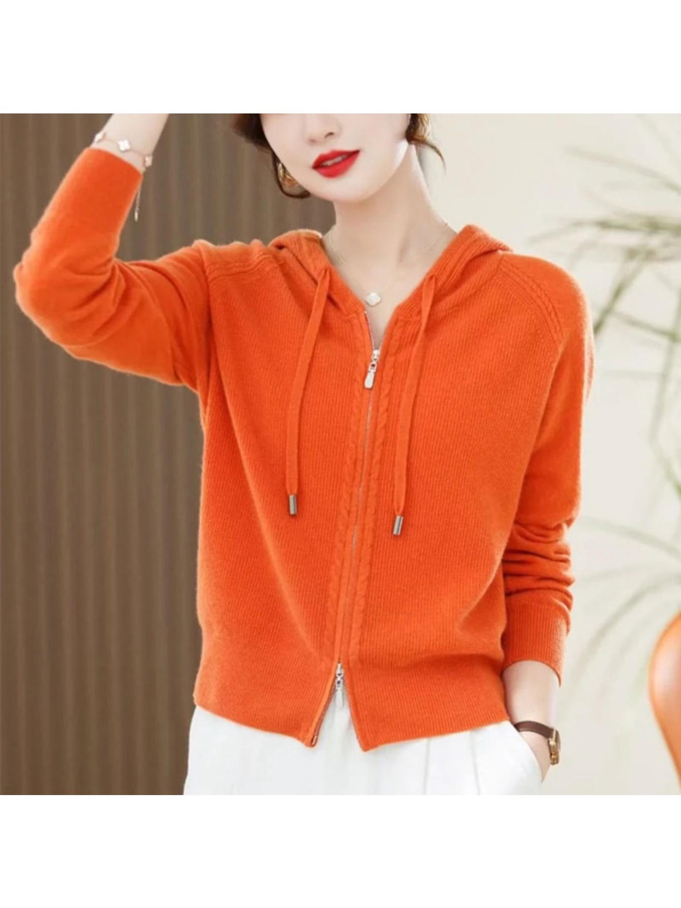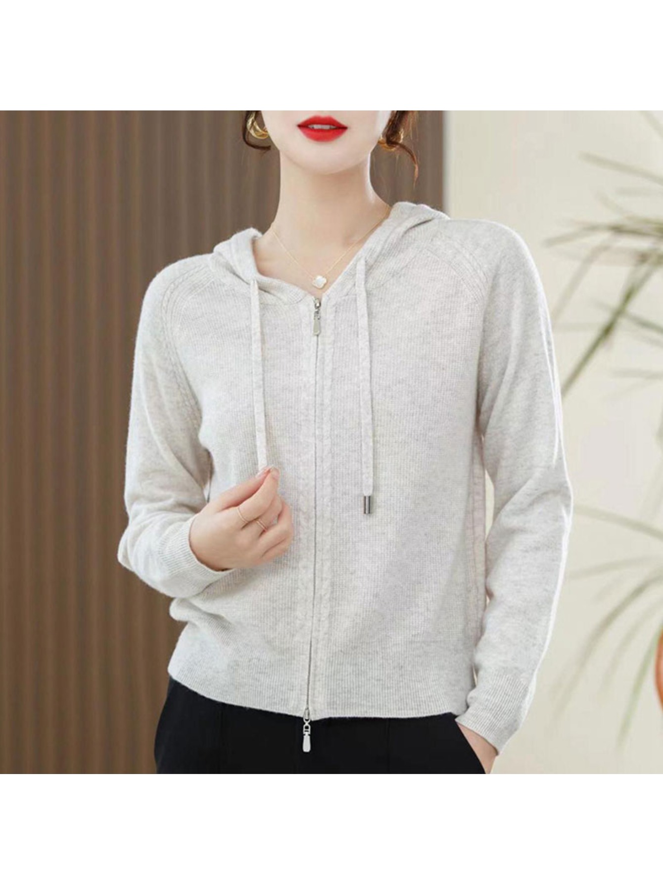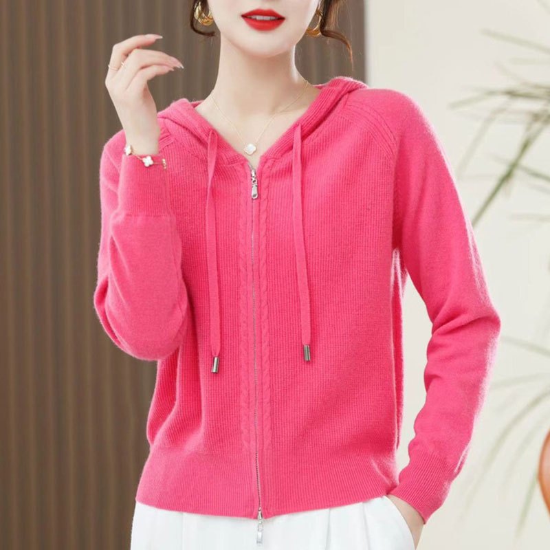 Spring and Autumn Women'S Hooded Cardigan | Long-Sleeved, Loose Fit, Solid Color, V-Neck, Elegant Style