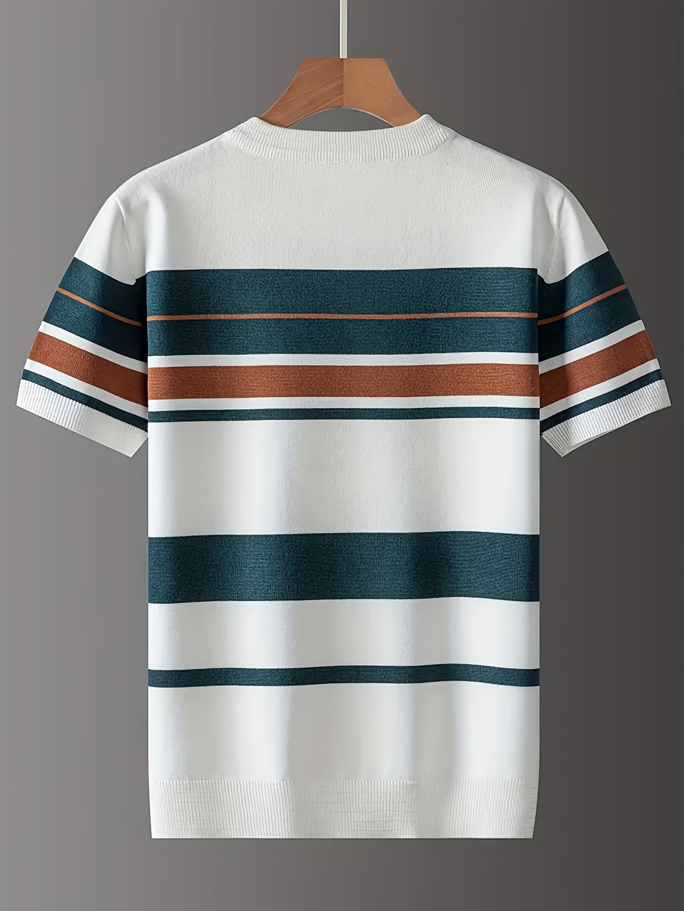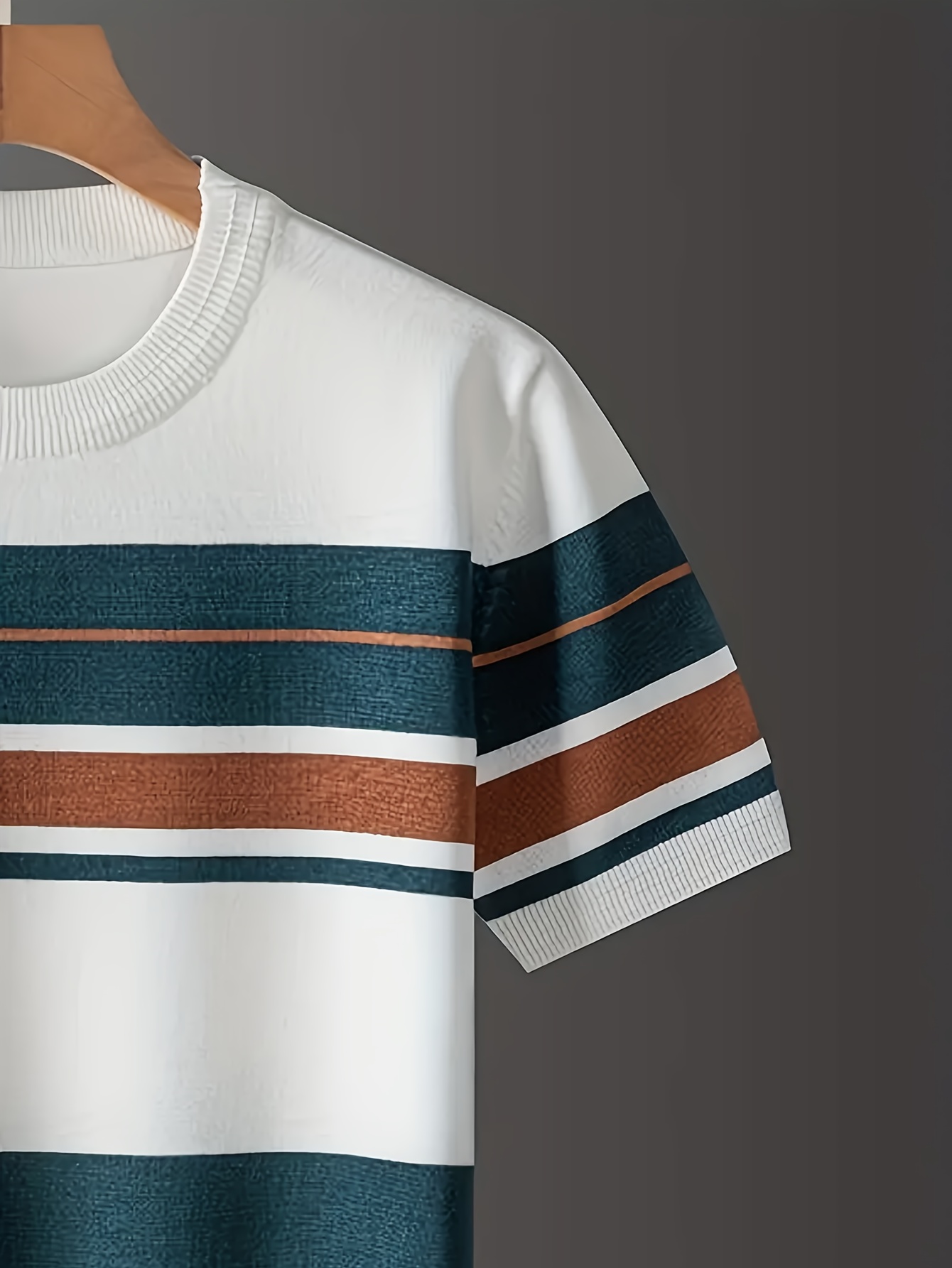[Summer Striped T-Shirt] LVLAEA Men's Summer Striped Pullover T-Shirt | Short Sleeve, Crew Neck, Casual Rayon Blend, Rib-Knit, Slight Stretch, Fashionable Stripes, Everyday Wear, Regular Fit, Breathable, Skin-Friendly