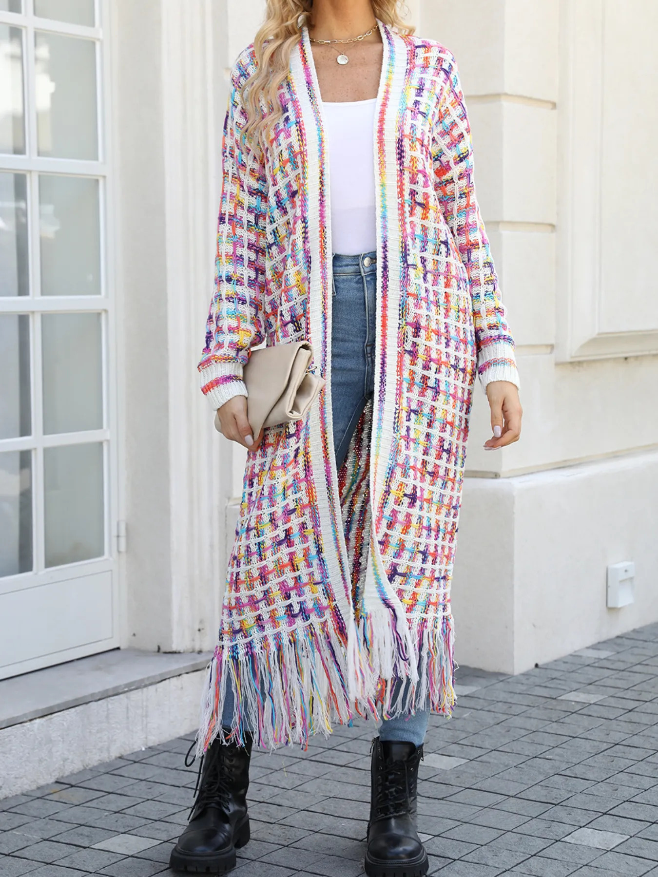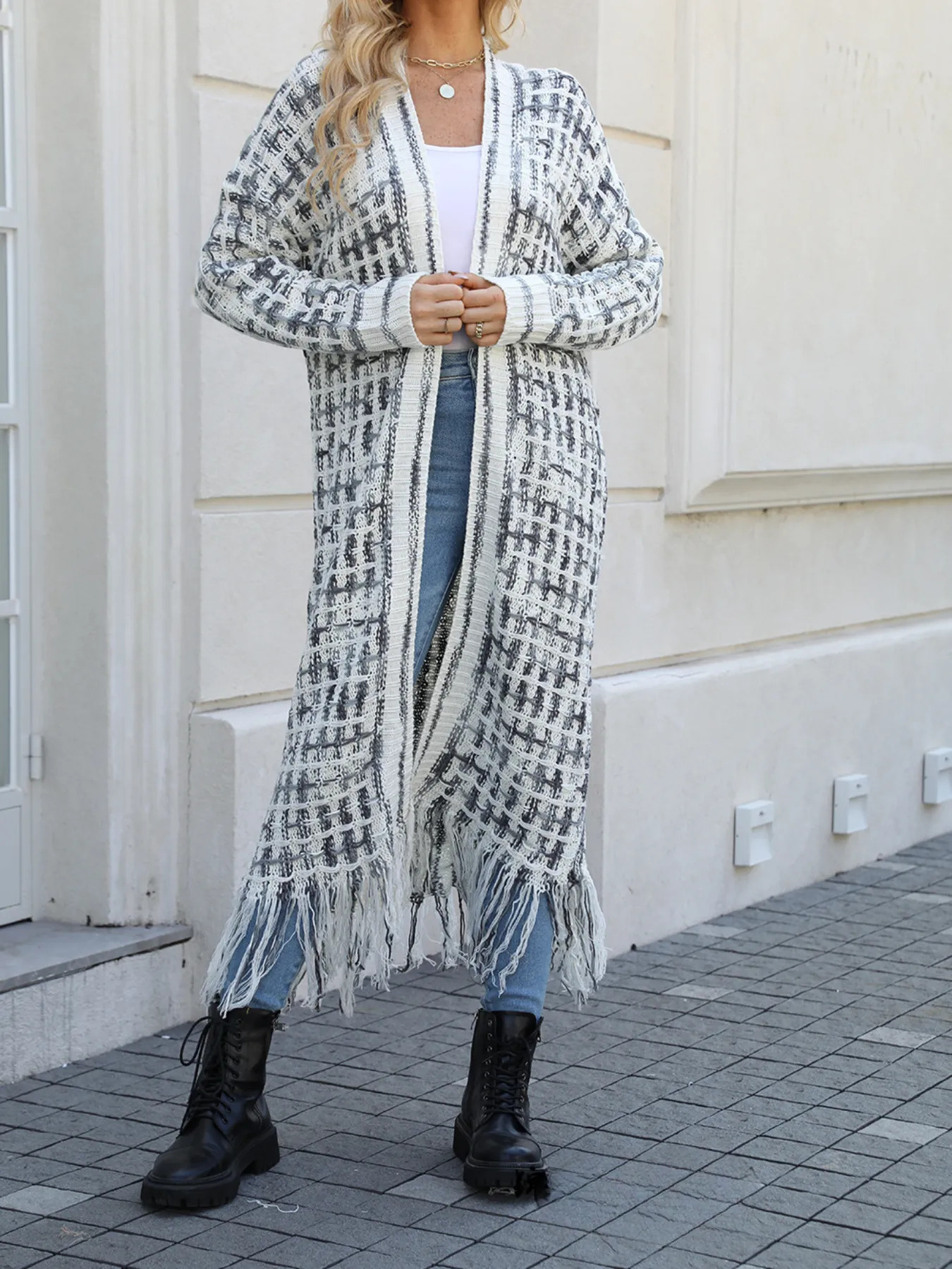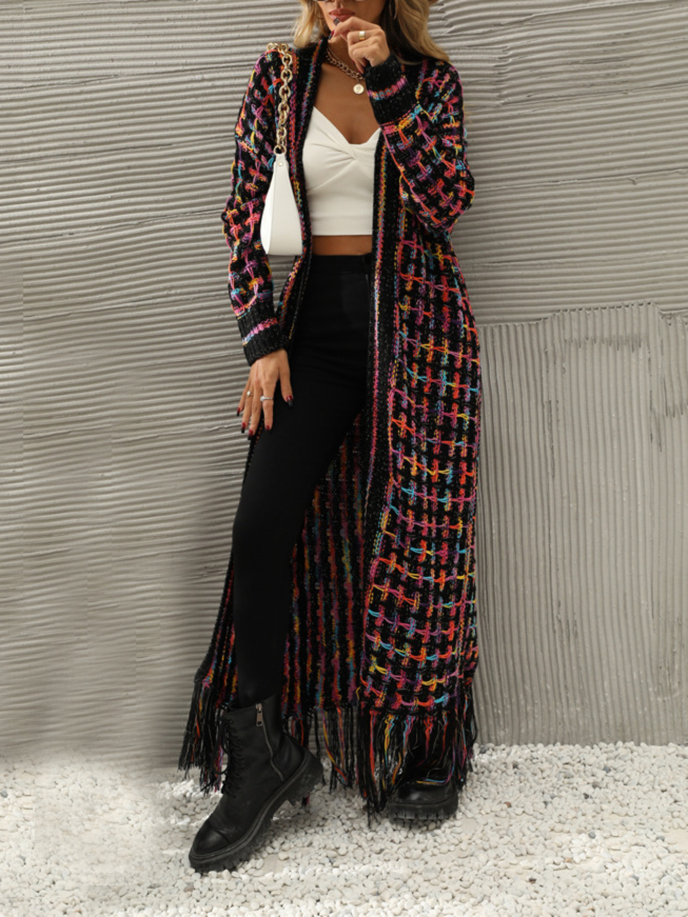 Women'S Elegant Fringe Long Cardigan - Non-Stretchy Loose Fit Winter Coat with Tassel Trim, Friendly, Belted Waist, Fall/Winter Outerwear for Everyday & Formal