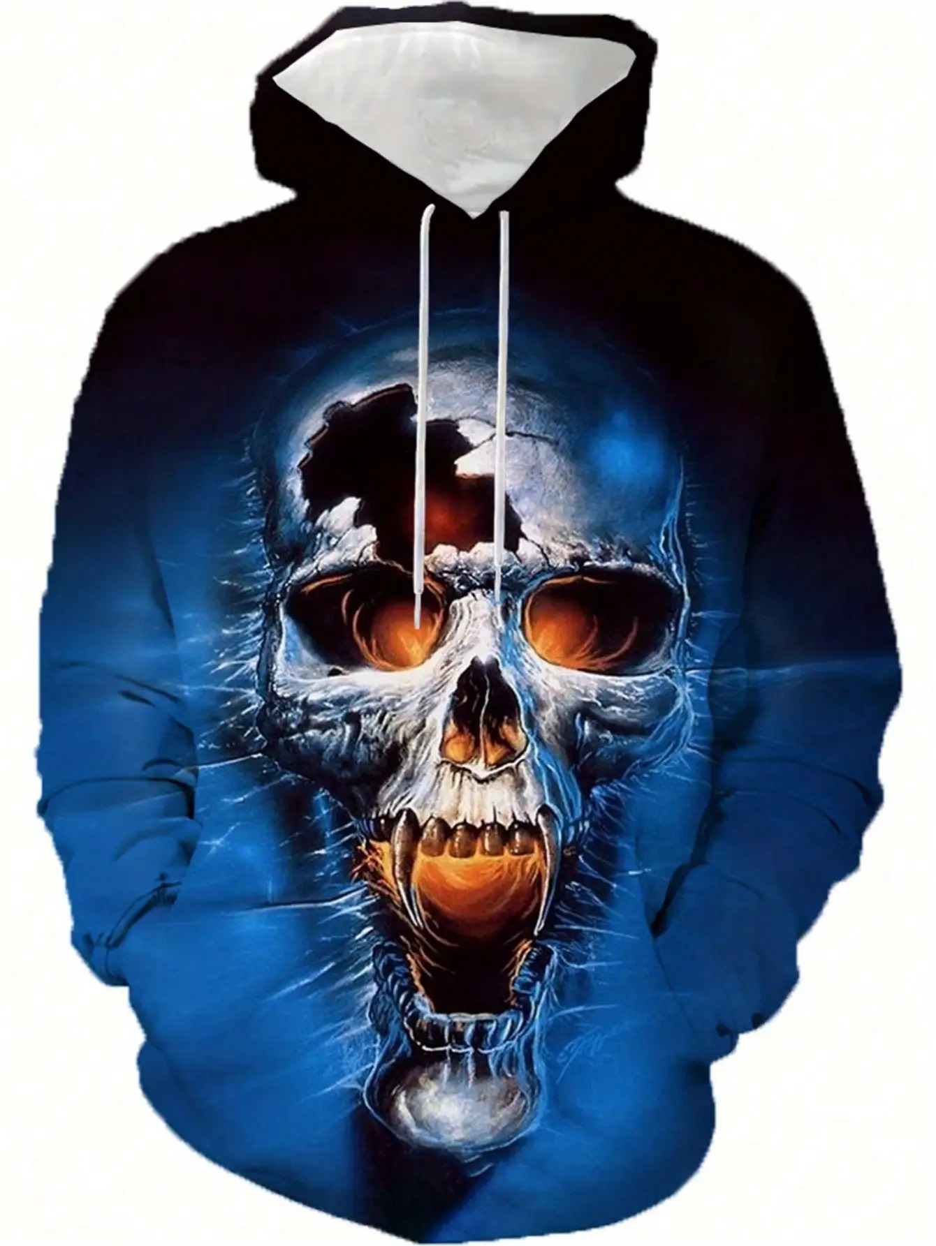 3D Men's Long Sleeve Casual Hoodie, Skull Print Hoodie, Drawstring, Kangaroo Pocket, Fashion Sweatshirt, Fashion Pattern Hoodie, Sports Fashion, Daily Spring Autumn Winter Top, PLUS SIZE