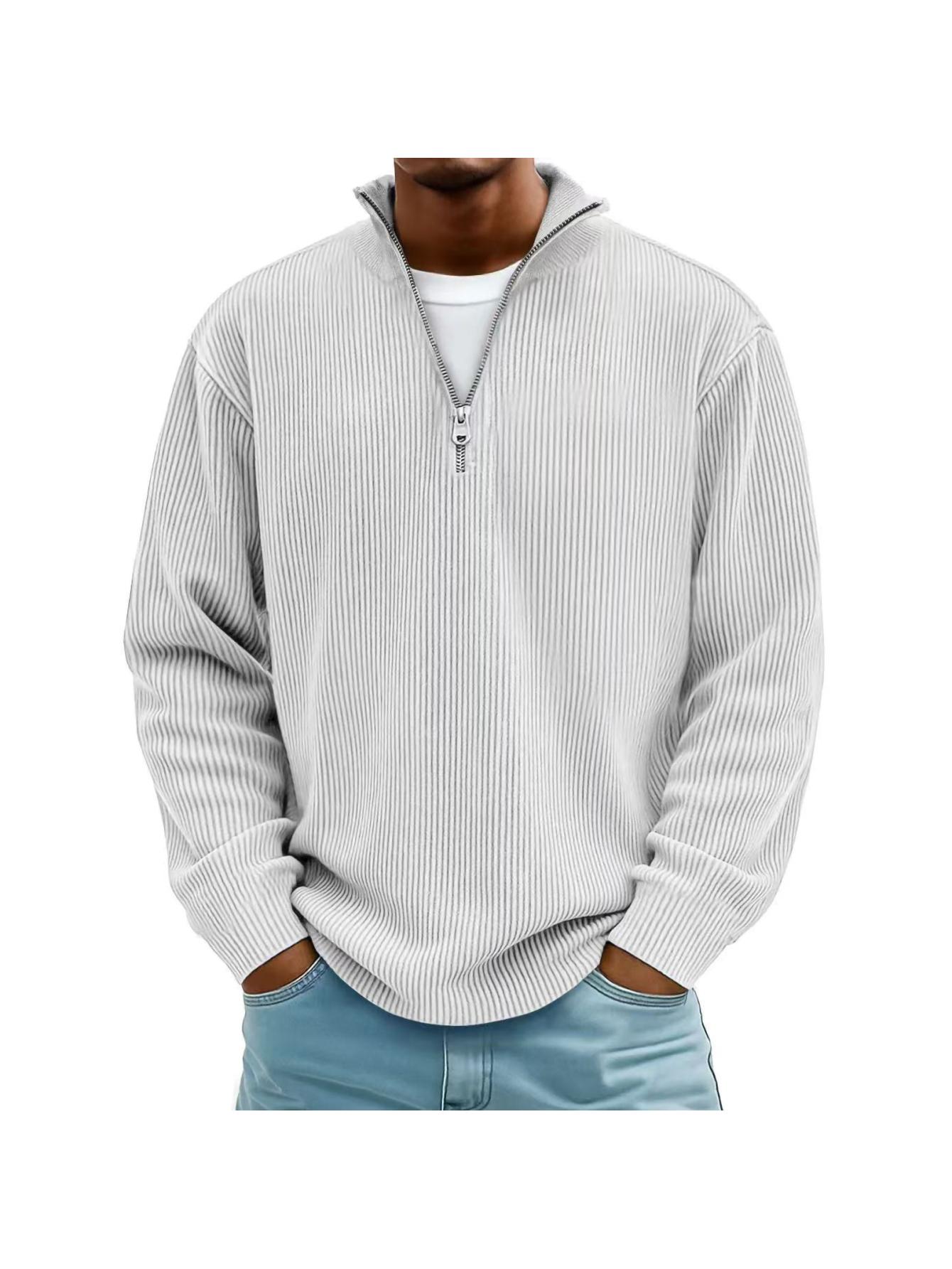 Men's Corduroy Quarter-Zip Sweater - Thermal Stand Collar -Neck Pullover, Corduroy Sweaters for Fall Winter Spring Summer, Casual Long Sleeve Machine-Washable Sweaters in Neutral Colors (/Tan/) - Regular Fit Top, PLUS SIZE