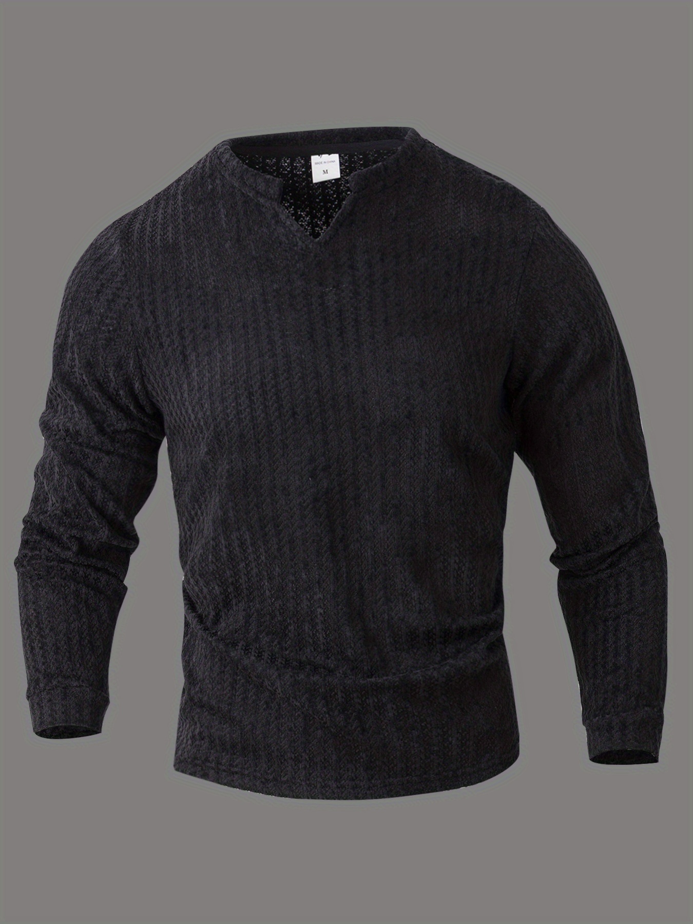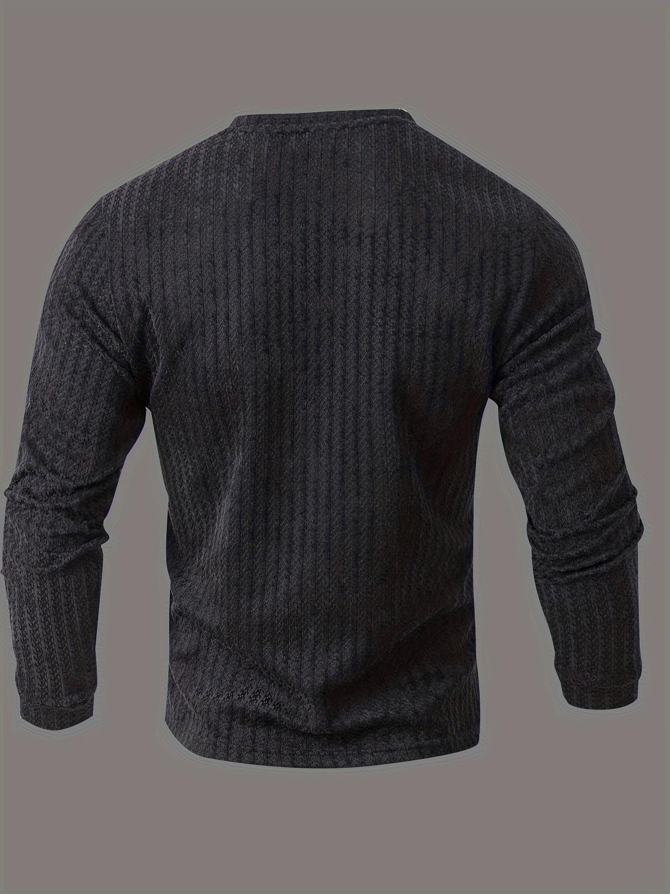 Men's Fashion Casual Long Sleeve Henley Shirt | Premium Houndstooth Jacquard Henley Collar T-Shirt | Notched V-Neck Design | Loose-Fit Comfortable Henley Tee | Essential Golf Wear | Breathable, Warm, and Skin-Friendly | for Indoor Gatherings and