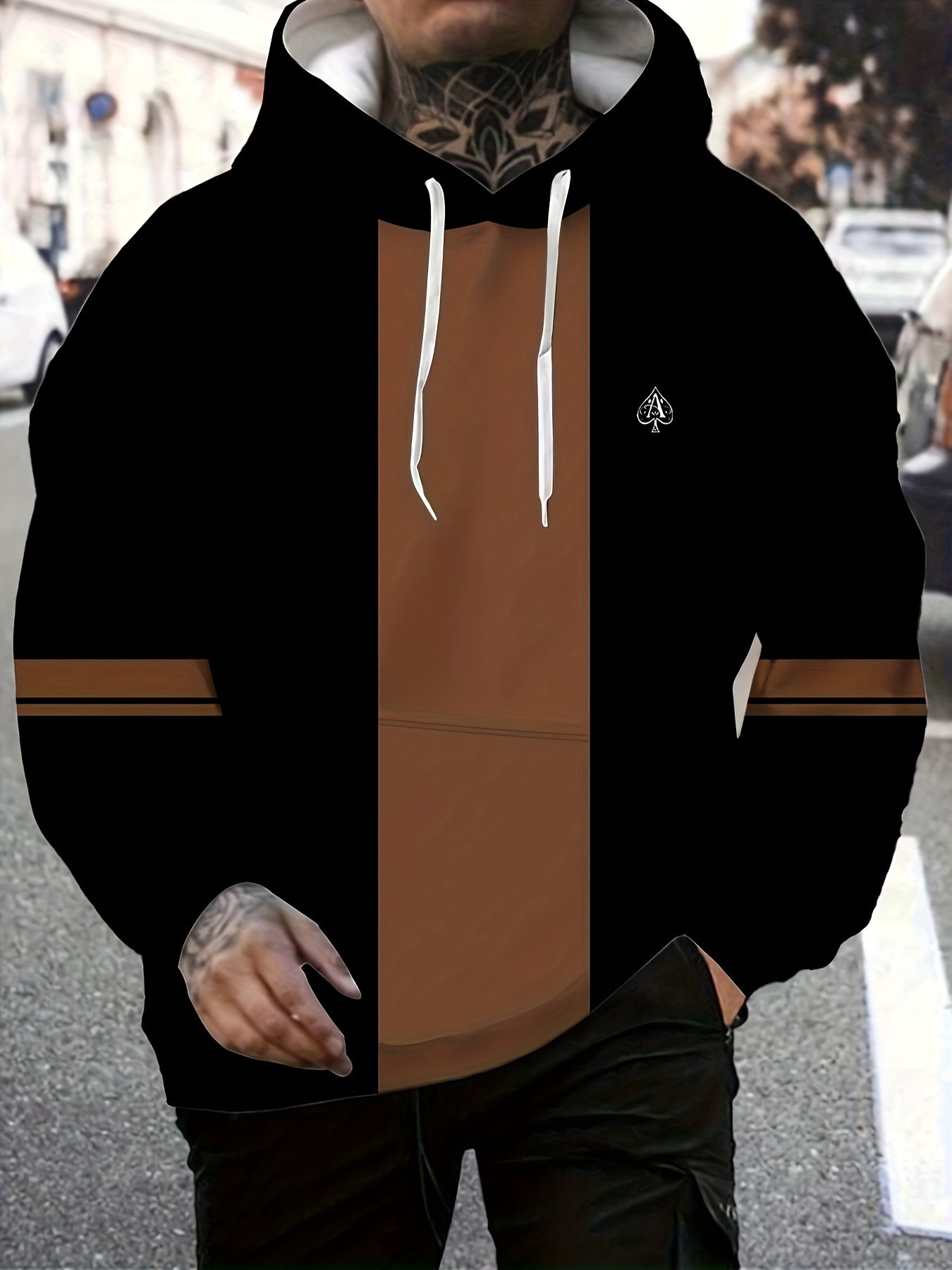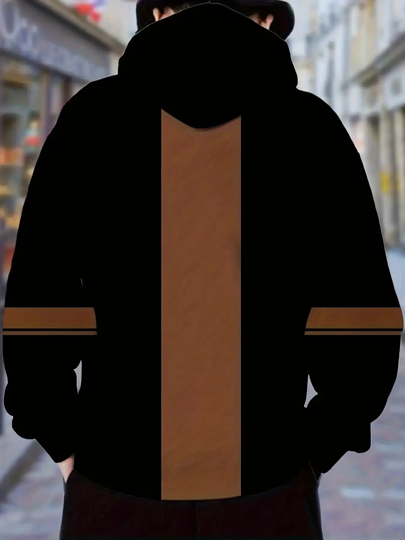 Men's Fleece-Lined Hooded Full-Zip Jacket - Winter Warmth Loose-Fit Windproof Sweatshirt, Machine Washable Gym Running Outdoor Sports Coat with Fleece, Black/Brown Casual Sportswear (No Bulk), PLUS SIZE
