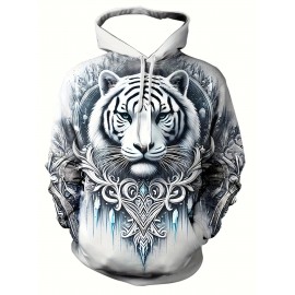 Men'S 3D Ice And Snow World Hoodie Featuring a White Tiger Design - a Long-Sleeve Casual Pullover with Drawstring Pockets, Adorned with Nature-Inspired Decorations And High-Quality Detailed Prints, Made from Machine-Washable Fabric, Plus Size