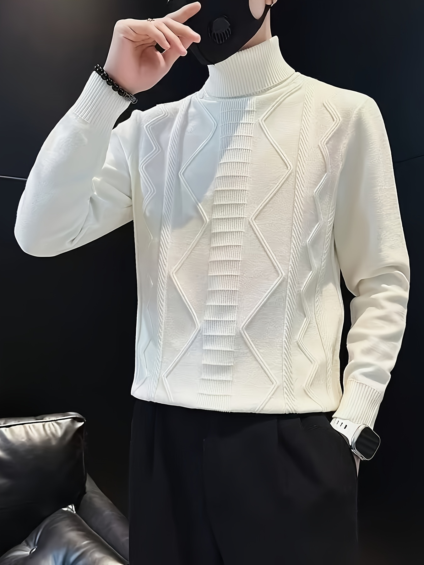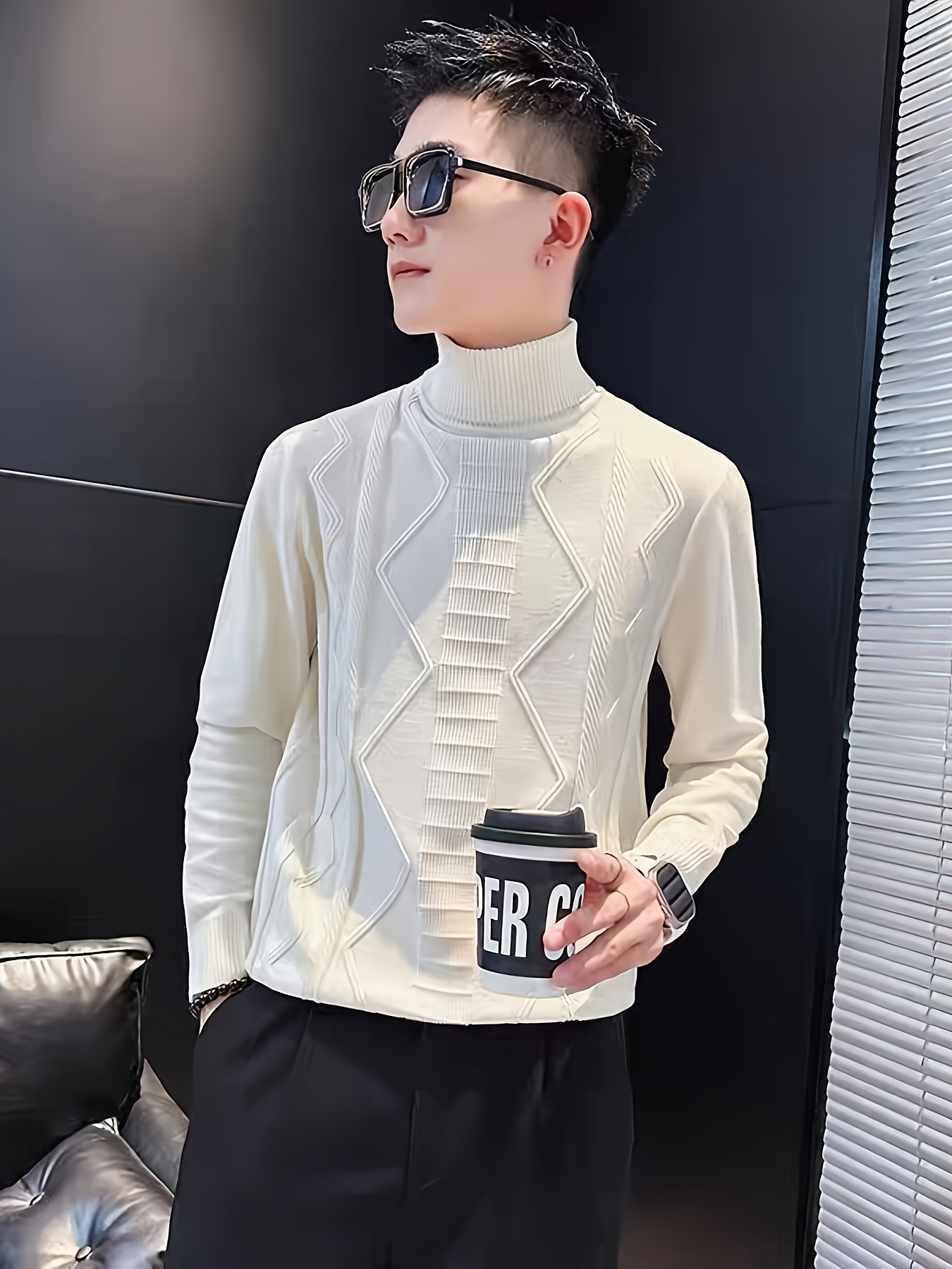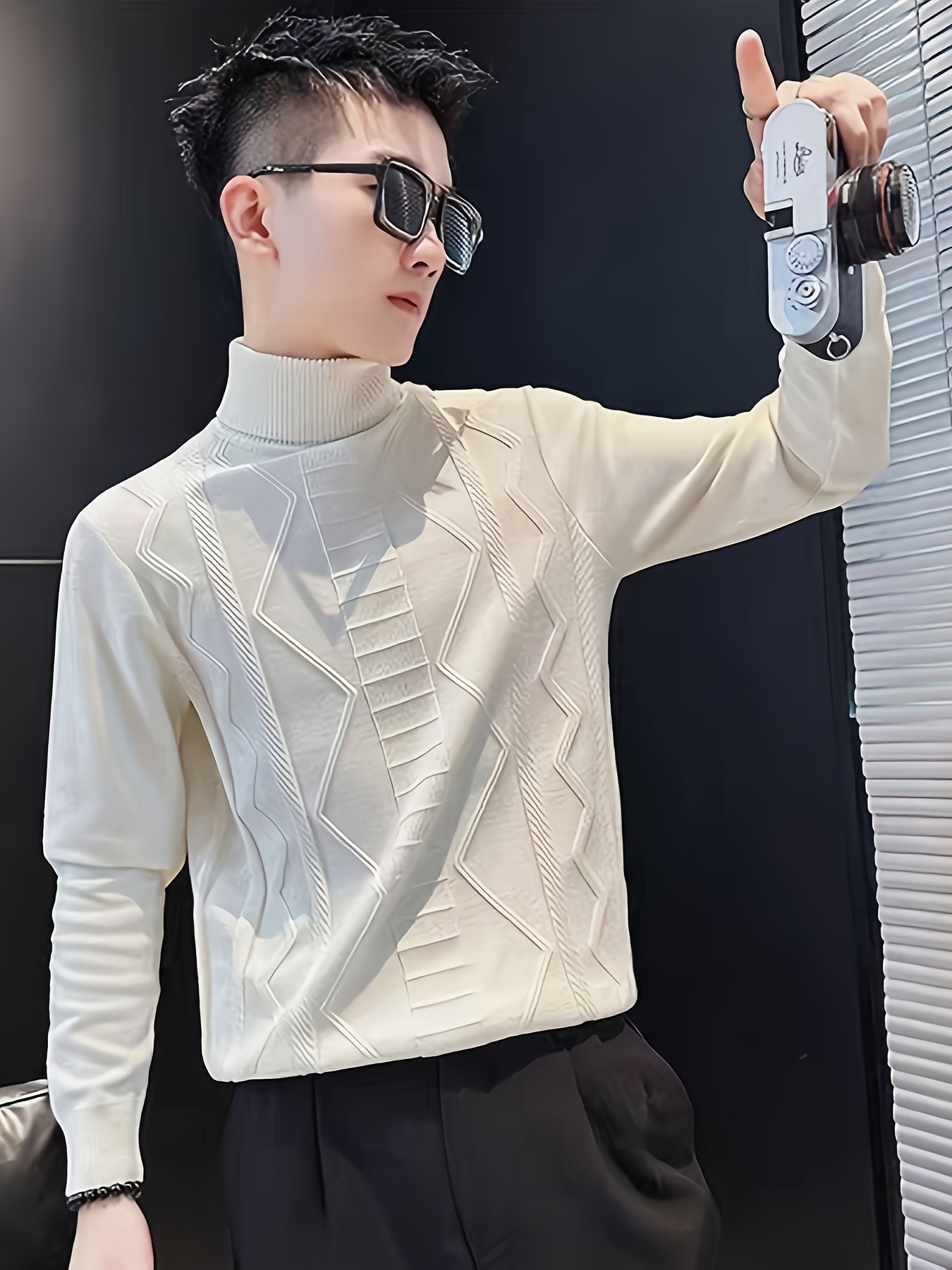 New Stylish Men'S Pullover with a High Collar And Three-Dimensional Jacquard Design, Knit