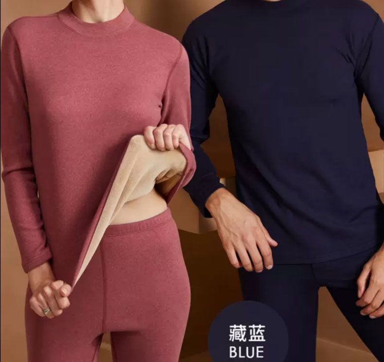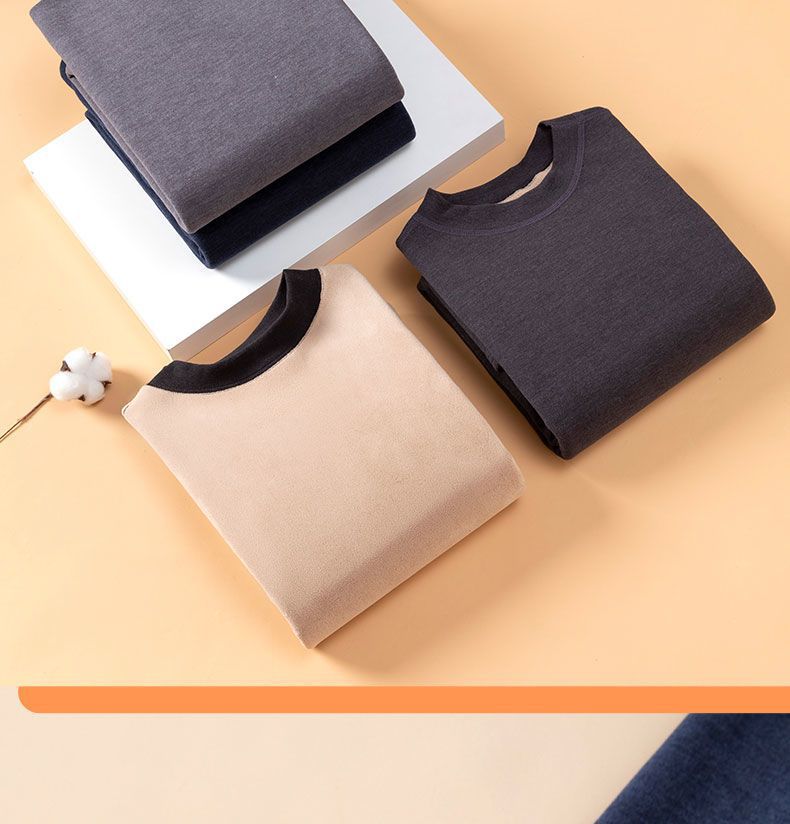 Plus Size - Women'S Thermal Underwear Set - Fleece-Lined Thickened Winter Panties, Full Coverage Round Neck Base Layer, Soft Stretchy Fabric for Cold Weather, Everyday & Formal Wear, Cozy Warmth, Seamless Design, Layering Essentials (Solid Color)